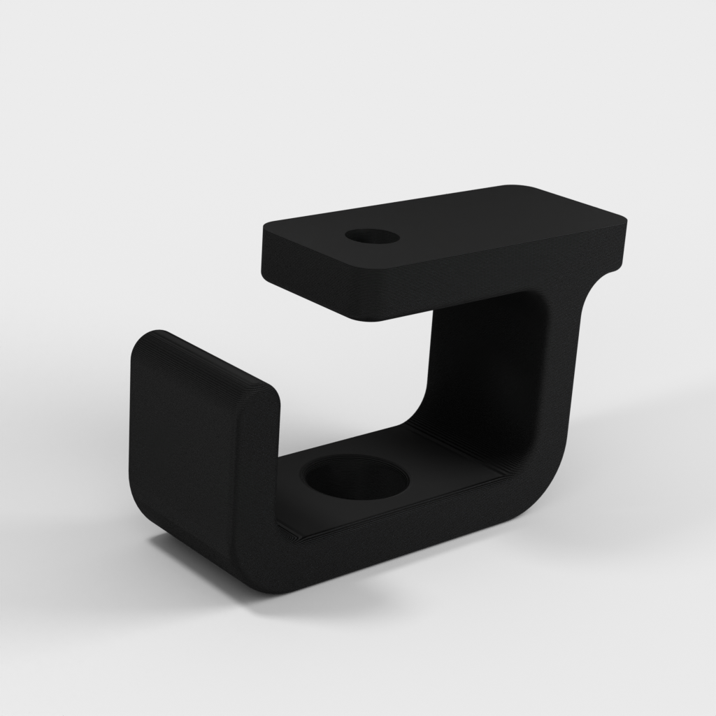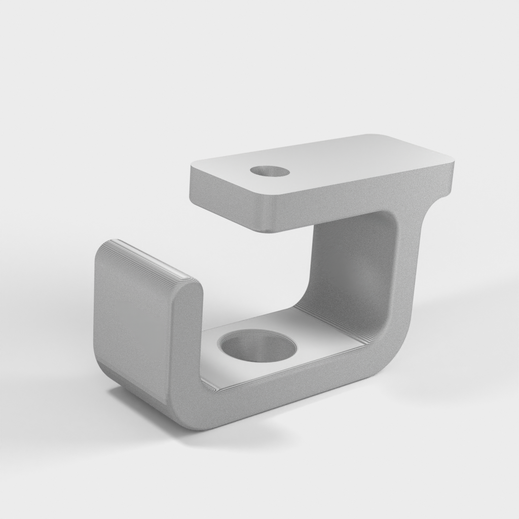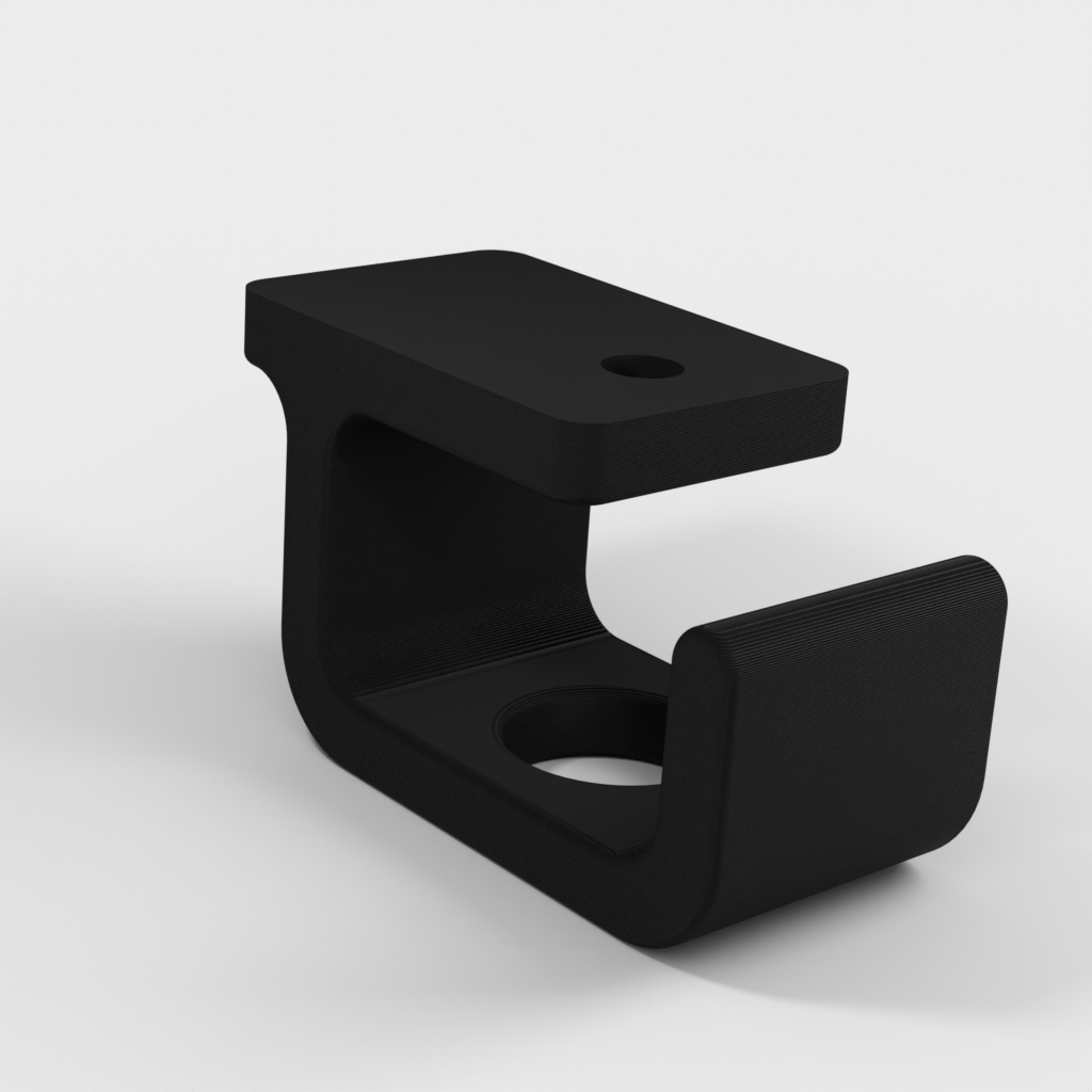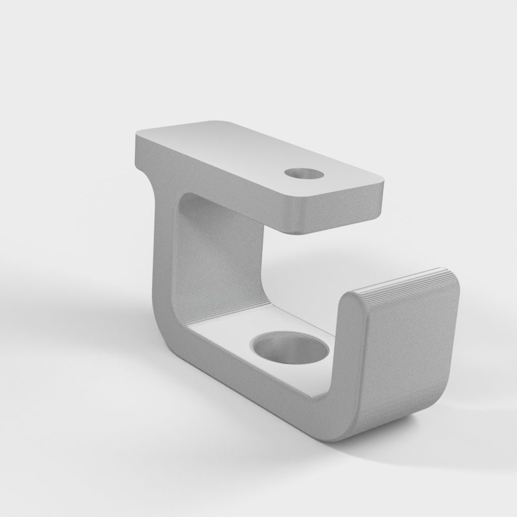 Denna kabelhanteringskrok är designad för att organisera kablar upp till 8 mm i diameter. Kroken kan skruvas direkt på din IKEA Ivar-hylla med en 3,5 x 16 mm träskruv med försänkt huvud. Två versioner av kroken finns: en normal version som kräver en skruvmejsel och en "lat" version med ett större hål som tillåter användning av en vanlig sladdlös skruvmejselbitshållare.