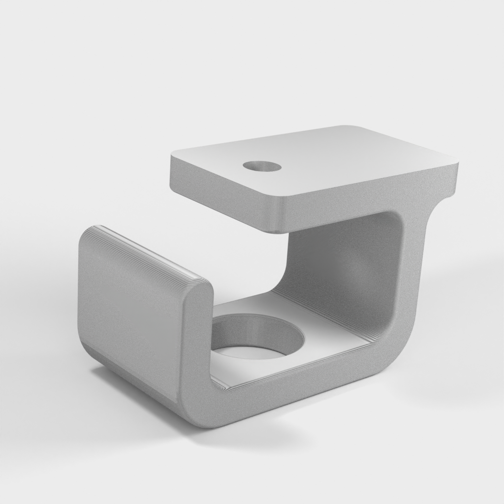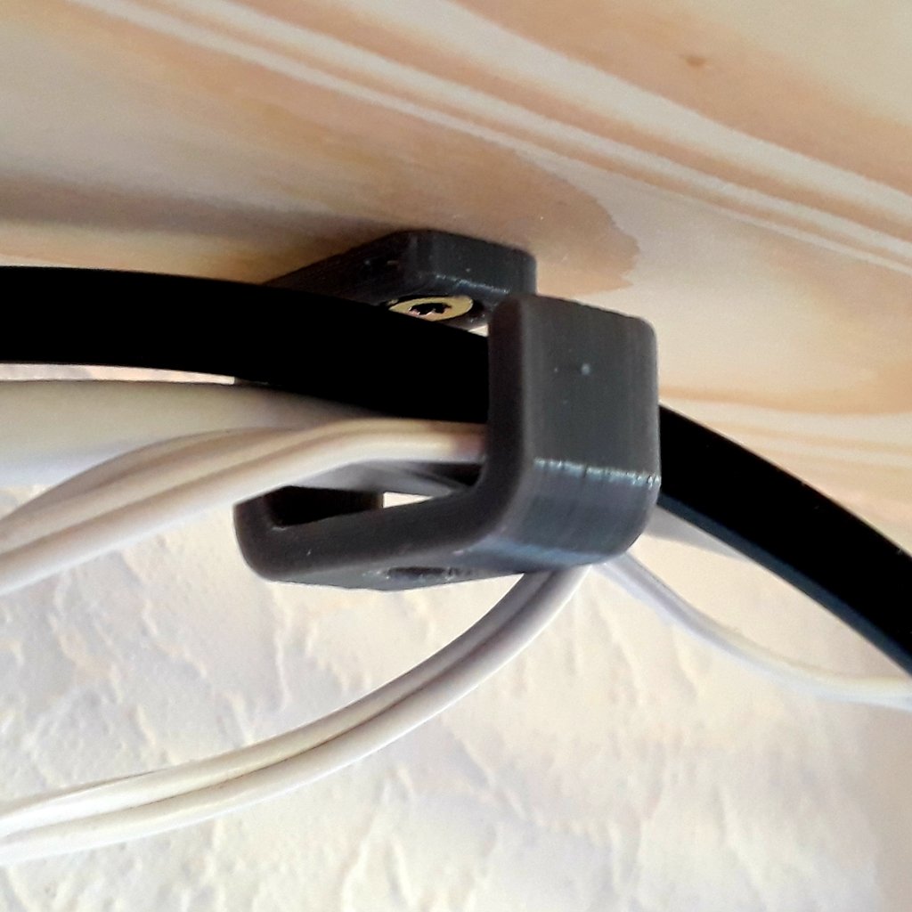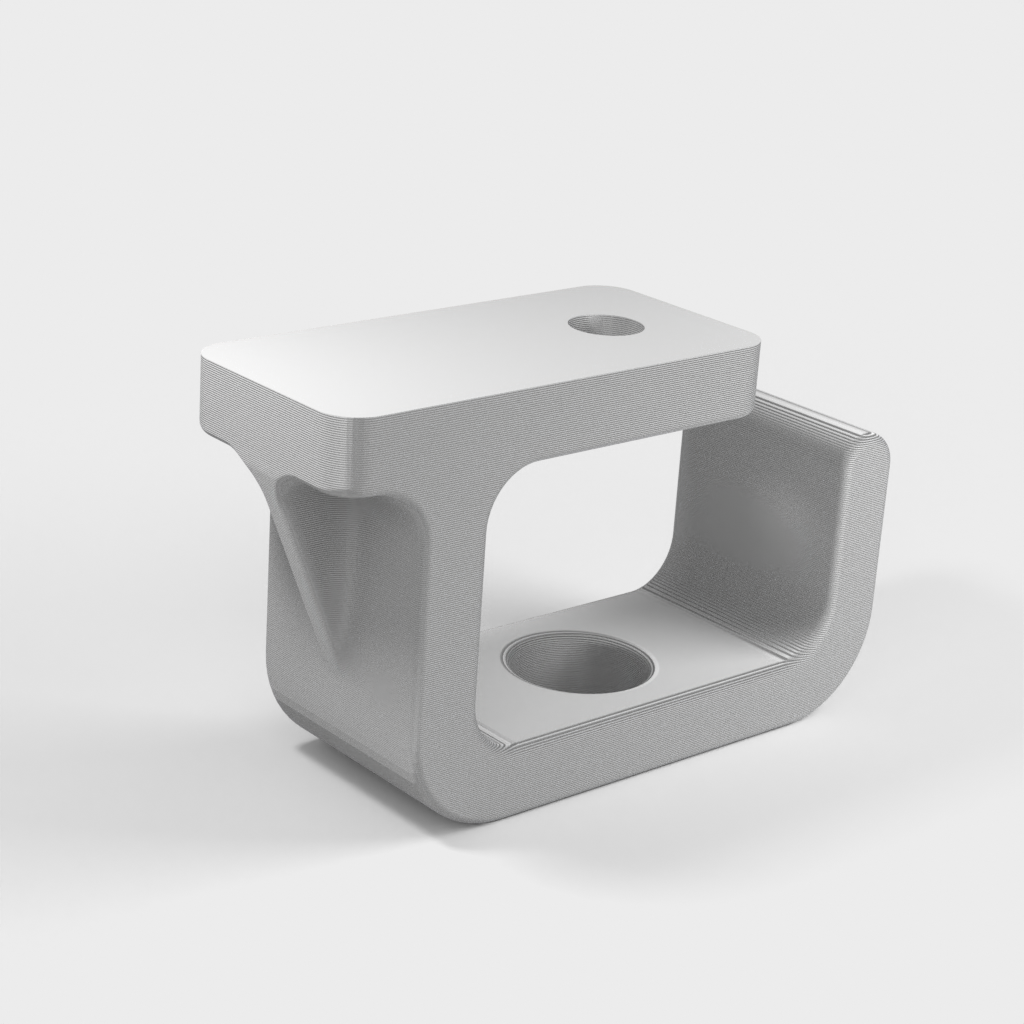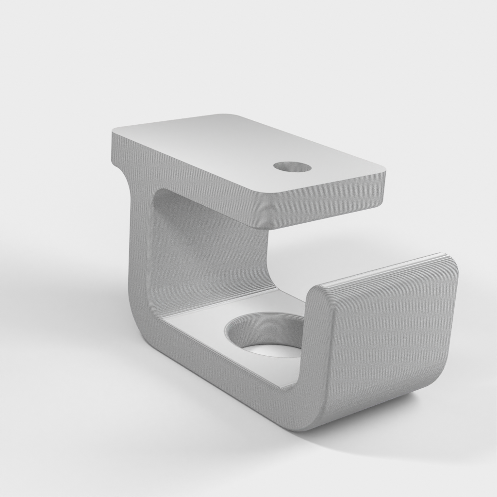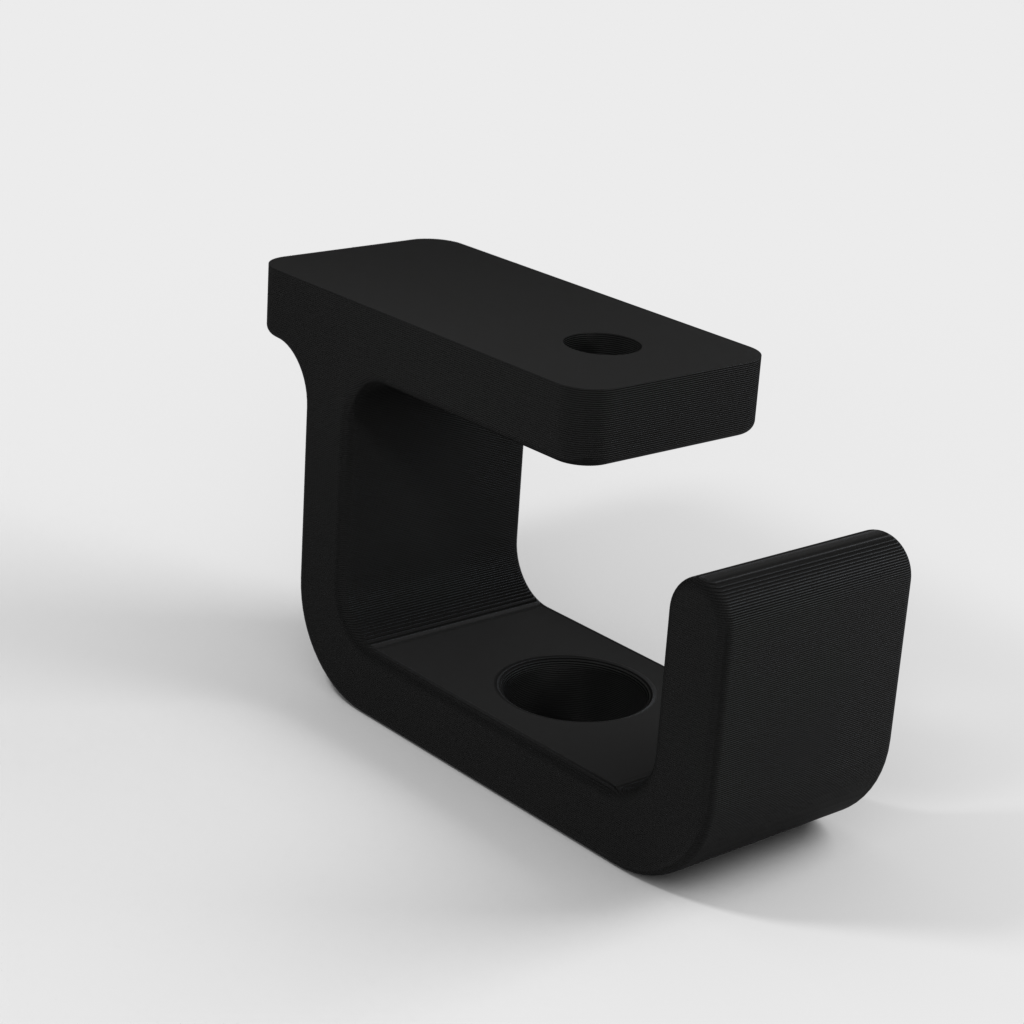 Denna kabelhanteringskrok är designad för att organisera kablar upp till 8 mm i diameter. Kroken kan skruvas direkt på din IKEA Ivar-hylla med en 3,5 x 16 mm träskruv med försänkt huvud. Två versioner av kroken finns: en normal version som kräver en skruvmejsel och en "lat" version med ett större hål som tillåter användning av en vanlig sladdlös skruvmejselbitshållare.