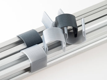 Kabelklämman finns i två versioner för att säkerställa optimal passform: en version är utformad för Misumi-profiler och kan även passa de flesta andra liknande profiler, medan den andra versionen är specifikt anpassad till Open Builds V-spårsprofiler . Detta gör att du kan välja den lösning som bäst matchar dina specifika kabelhanteringsbehov på dina aluminiumkonstruktioner.