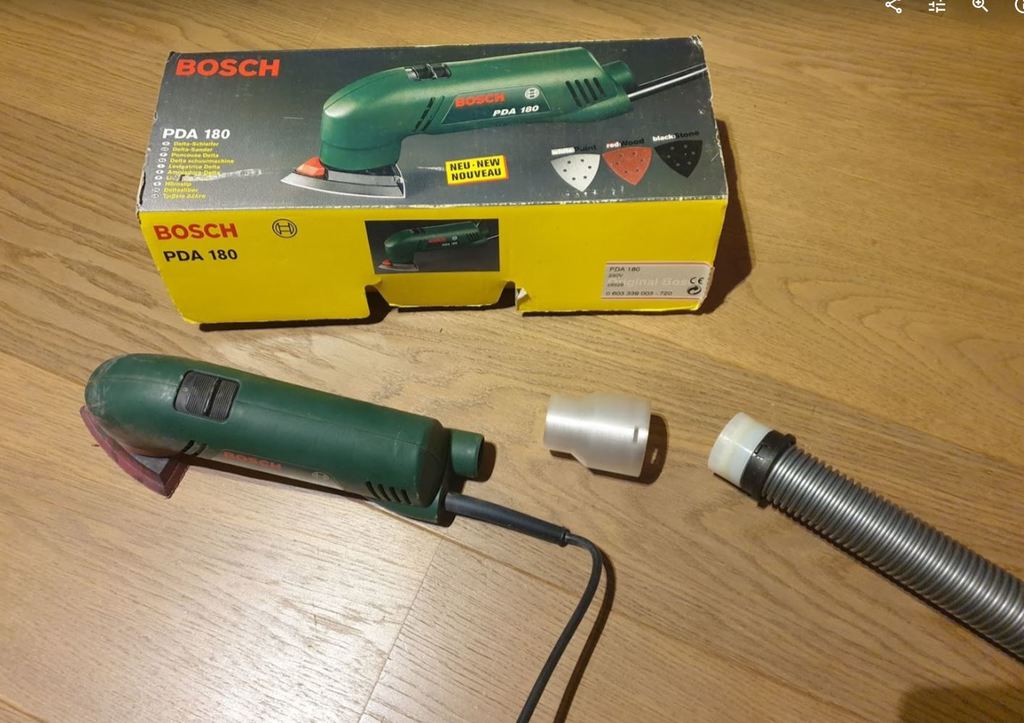 Mieles monteringsfäste och adapter för dammsugarslang för Bosch deltaslipmaskin och Philips dammsugare