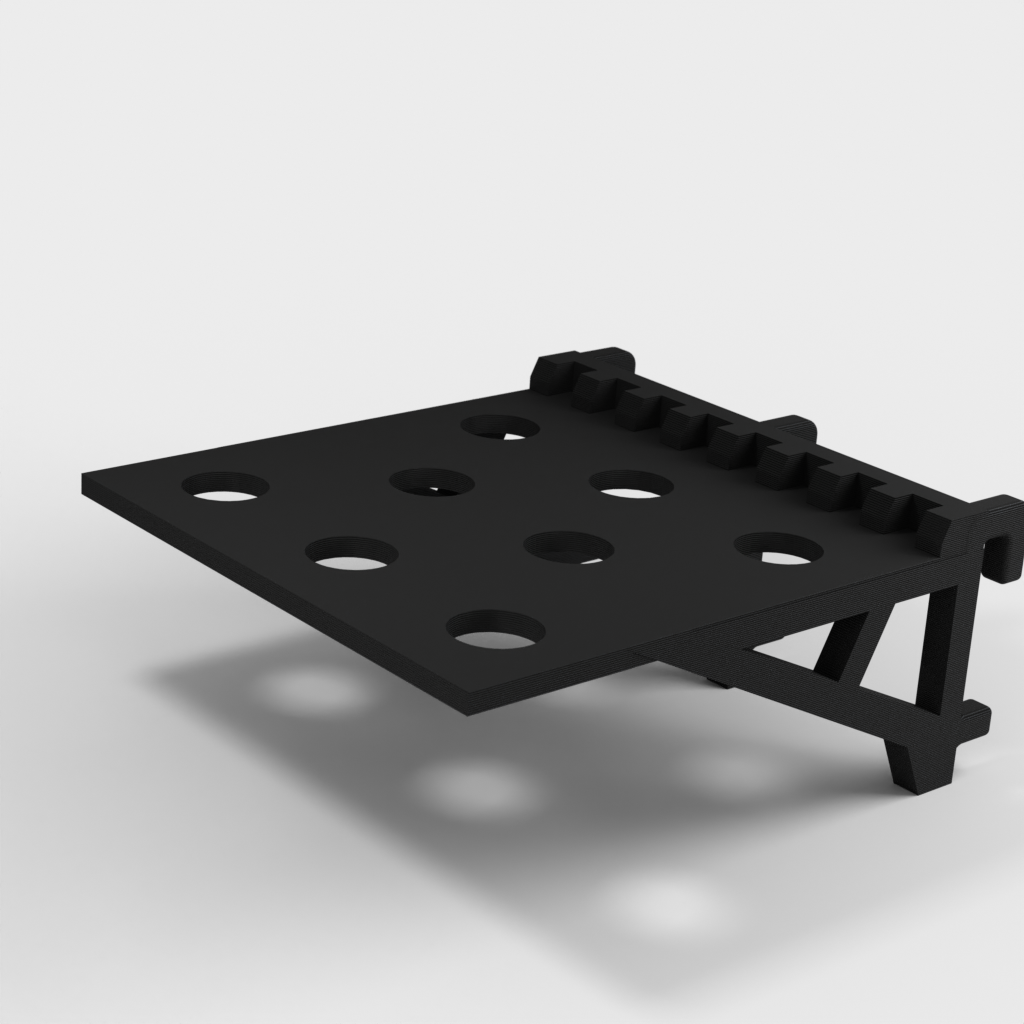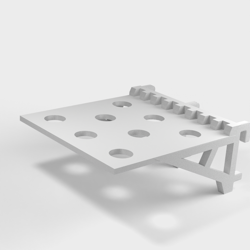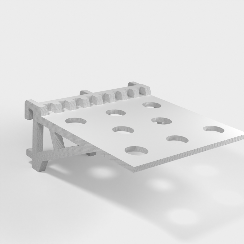 Robust skruvhållare för IKEA Skadis Pegboard. Perfekt för att hålla skruvmejslar snygga och organiserade i din verkstad, bod eller arbetsfordon. Kan enkelt monteras direkt på pinnbrädan med några få skruvar för effektivare förvaring.