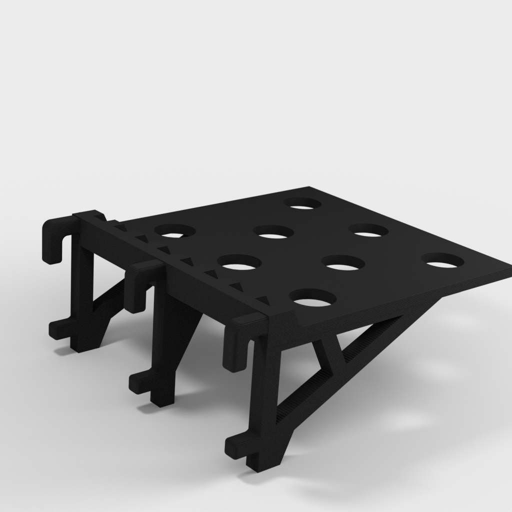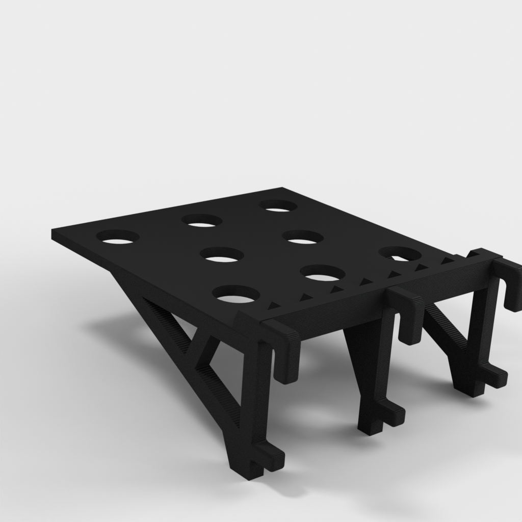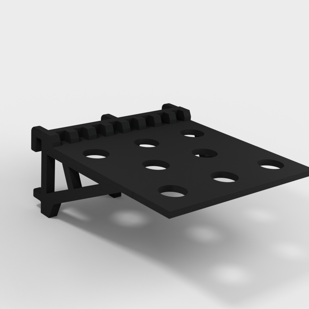 Robust skruvhållare för IKEA Skadis Pegboard. Perfekt för att hålla skruvmejslar snygga och organiserade i din verkstad, bod eller arbetsfordon. Kan enkelt monteras direkt på pinnbrädan med några få skruvar för effektivare förvaring.