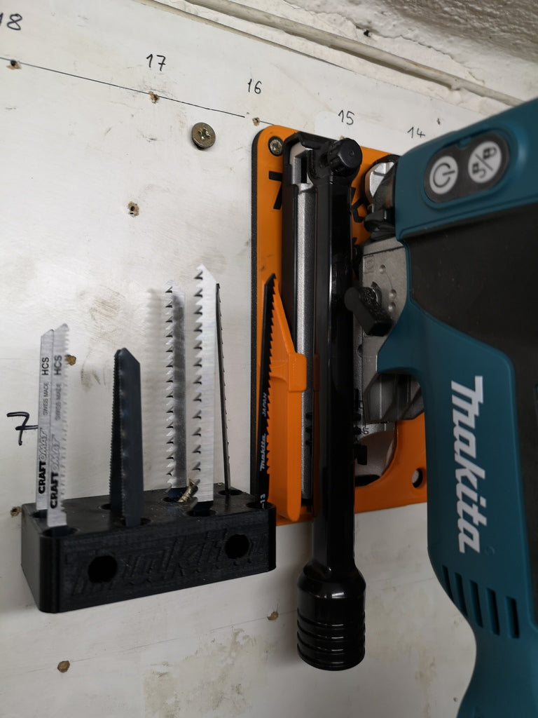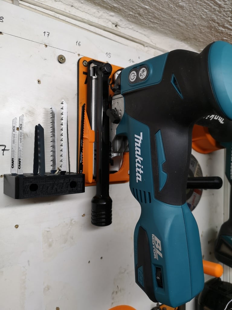 Detta är en väggmonterad sticksåg för Makita DJV181. Verktyget kan enkelt placeras i hållaren, vilket gör din verkstad, bod eller arbetsfordon mer städad och organiserad. Det solida väggfästet ger säker förvaring och enkel åtkomst till din Makita sticksåg när det behövs.