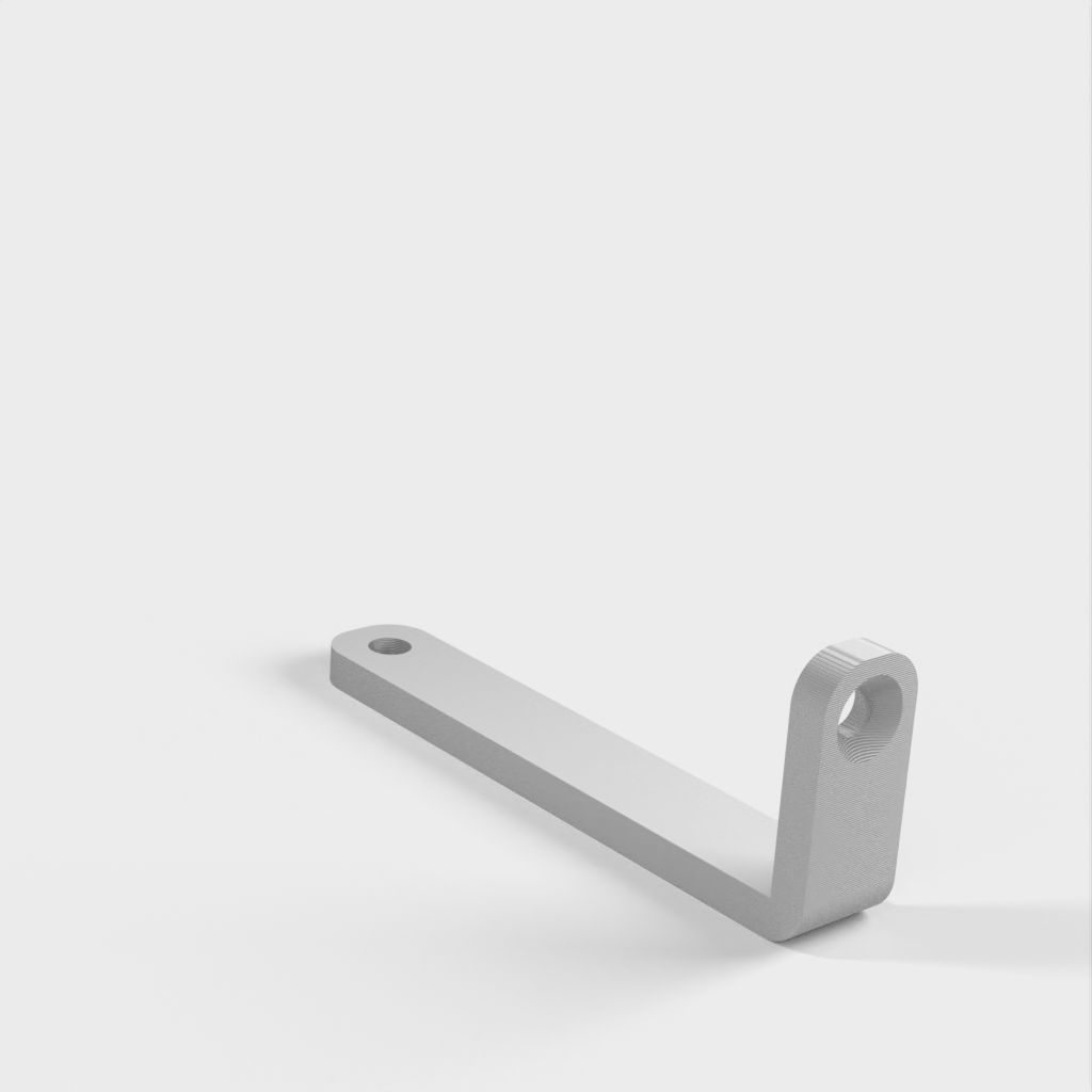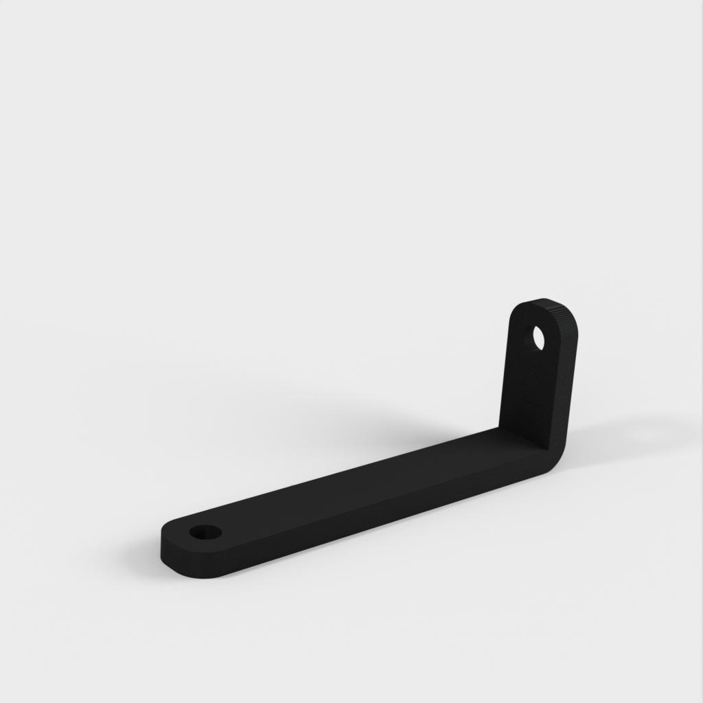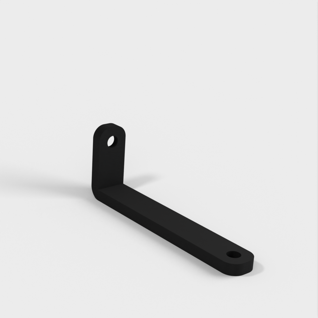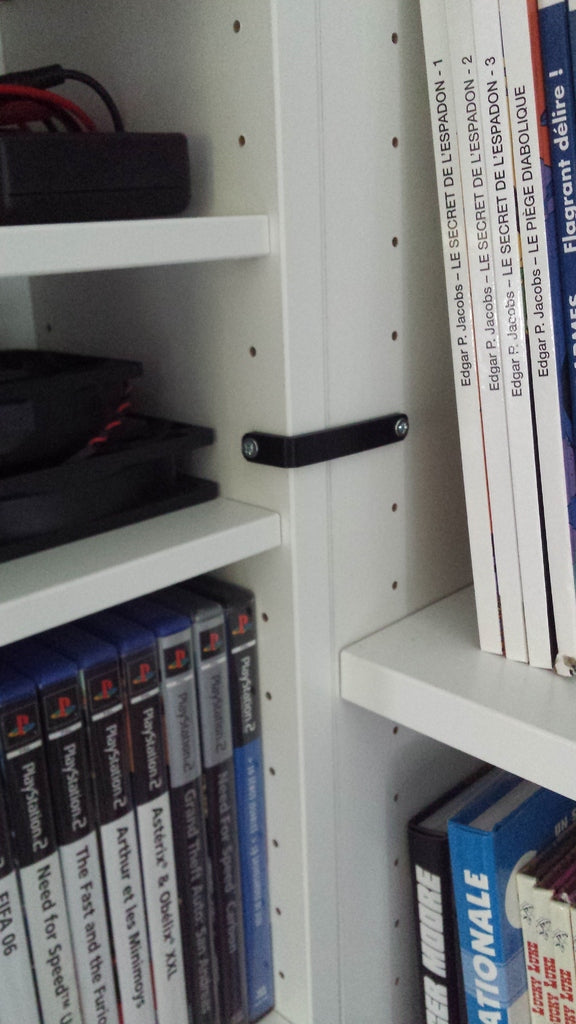 Det här fästet är utformat för att hålla två IKEA BILLY-bokhyllor ( http://www.ikea.com/fr/fr/catalog/products/30323353/ ) och en IKEA GNEDBY-hylla ( http://www.ikea.com/fr / fr/catalog/products/00323364/ ) på en vinkel. Denna lösning hjälper till att undvika flexibilitet och luckor mellan hyllorna och kräver endast originalfästet för hyllorna och 2 små skruvar för att montera fästet.