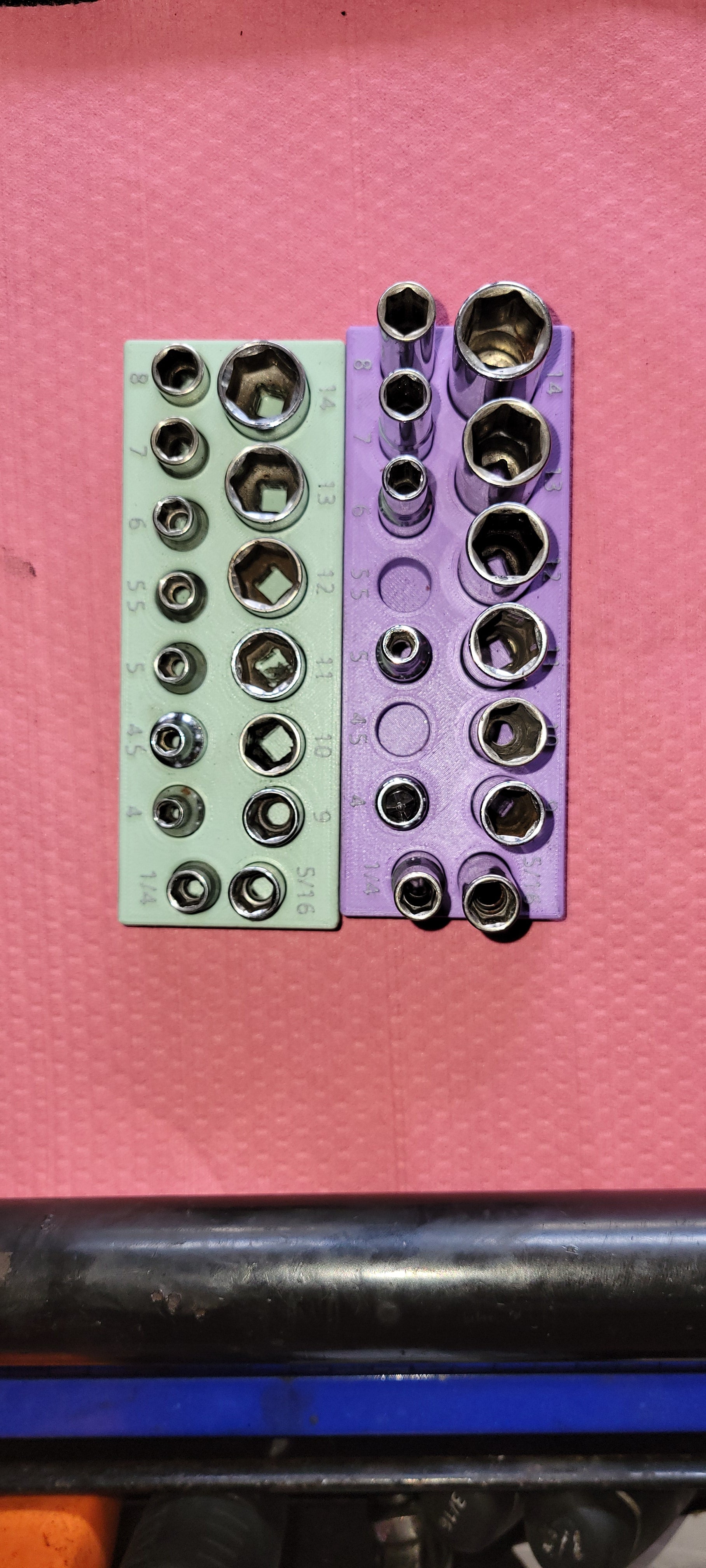 Denna praktiska hylsbricka är utformad för att ge en organiserad och lättillgänglig förvaringslösning för dina 1/4-tums hylsor. Brickan rymmer en mängd olika storlekar, från 4 mm upp till 14 mm, samt de tumbaserade 1/4-tums och 5/16-tums hylsorna. Även om den är optimerad för Husky-hylsor, kan den även användas med andra märken av liknande dimensioner, vilket gör den till ett mångsidigt verktyg i alla verkstäder eller garage. För att underlätta identifiering av rätt storlek är etiketterna upphöjda, vilket ger en tydlig översikt. Dessutom finns det inbyggda 8x2 mm magnetiska spår i botten, som kan användas för att säkra brickan från att glida på metallytor, vilket bidrar till en mer stabil och prydlig arbetsyta. En idealisk lösning för att hålla dina hylsor samlade och inom räckhåll.