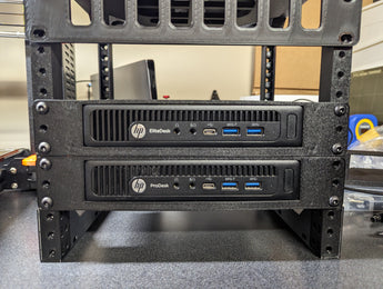 Optimera ditt serverutrymme med detta specialdesignade 10-tums 1U-rackfäste, skapat för HP EliteDesk- och ProDesk Mini G2 USFF-datorer. Detta rackfäste ger en säker och organiserad lösning för att integrera dina minidatorer i en standardrackmiljö.