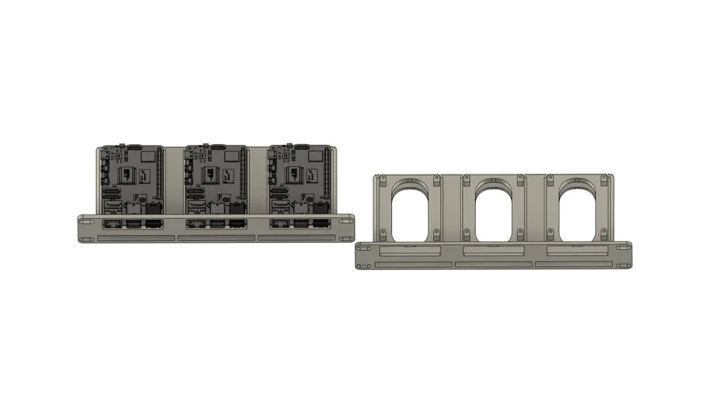 Organiser dit homelab med dette 10 tommer rack mount, der er designet til at rumme tre Raspberry Pi 5 enheder og tre 2,5" SSD'er. Denne løsning sikrer en stabil og kompakt server opsætning i dit 10" rack kabinet.