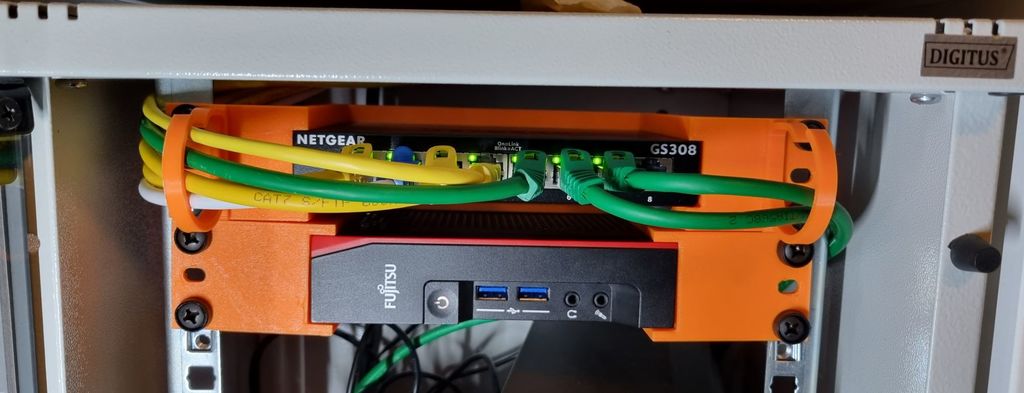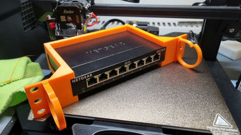 Detta fäste är designat för att montera en Netgear GS308v3 Switch i ett 10'' Rack-hölje. Fästet har kabelhanteringsklämmor på båda sidor, så din installation förblir organiserad och snygg.