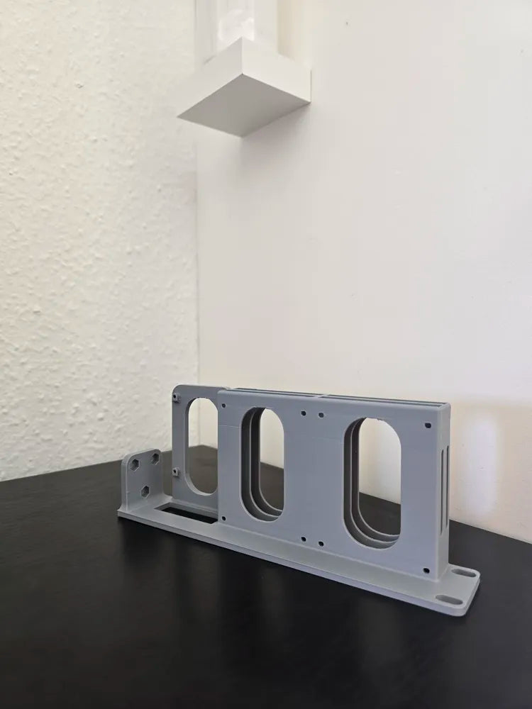 - Modulært 19-tommer rackbeslag designet til at huse fire 2.5 tommer SSD'er sammen med en Raspberry Pi.