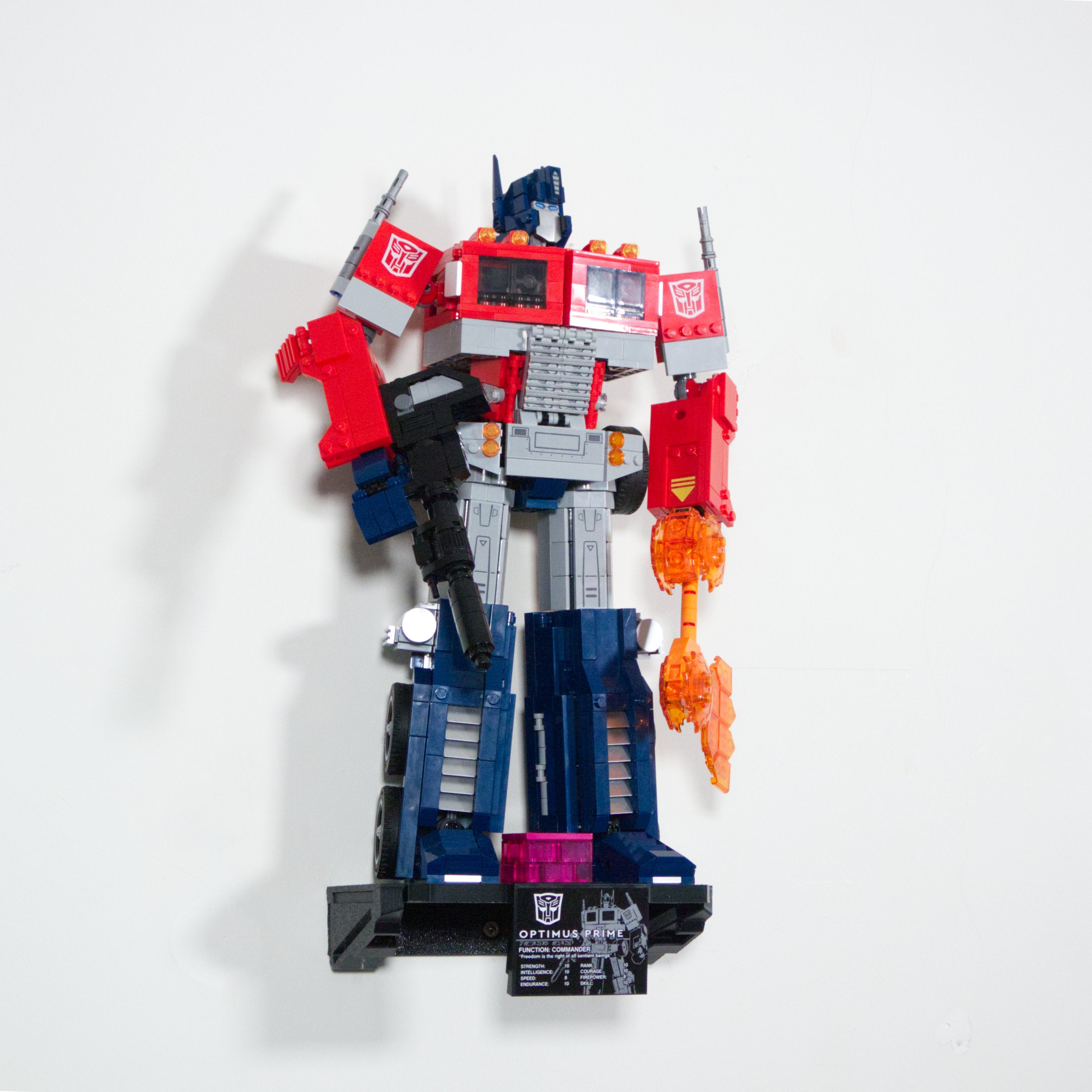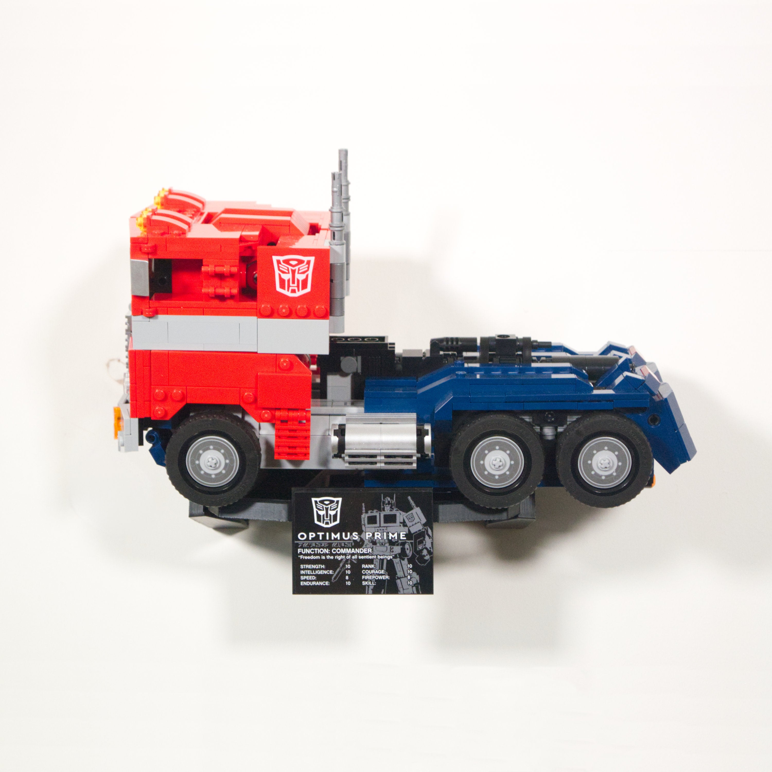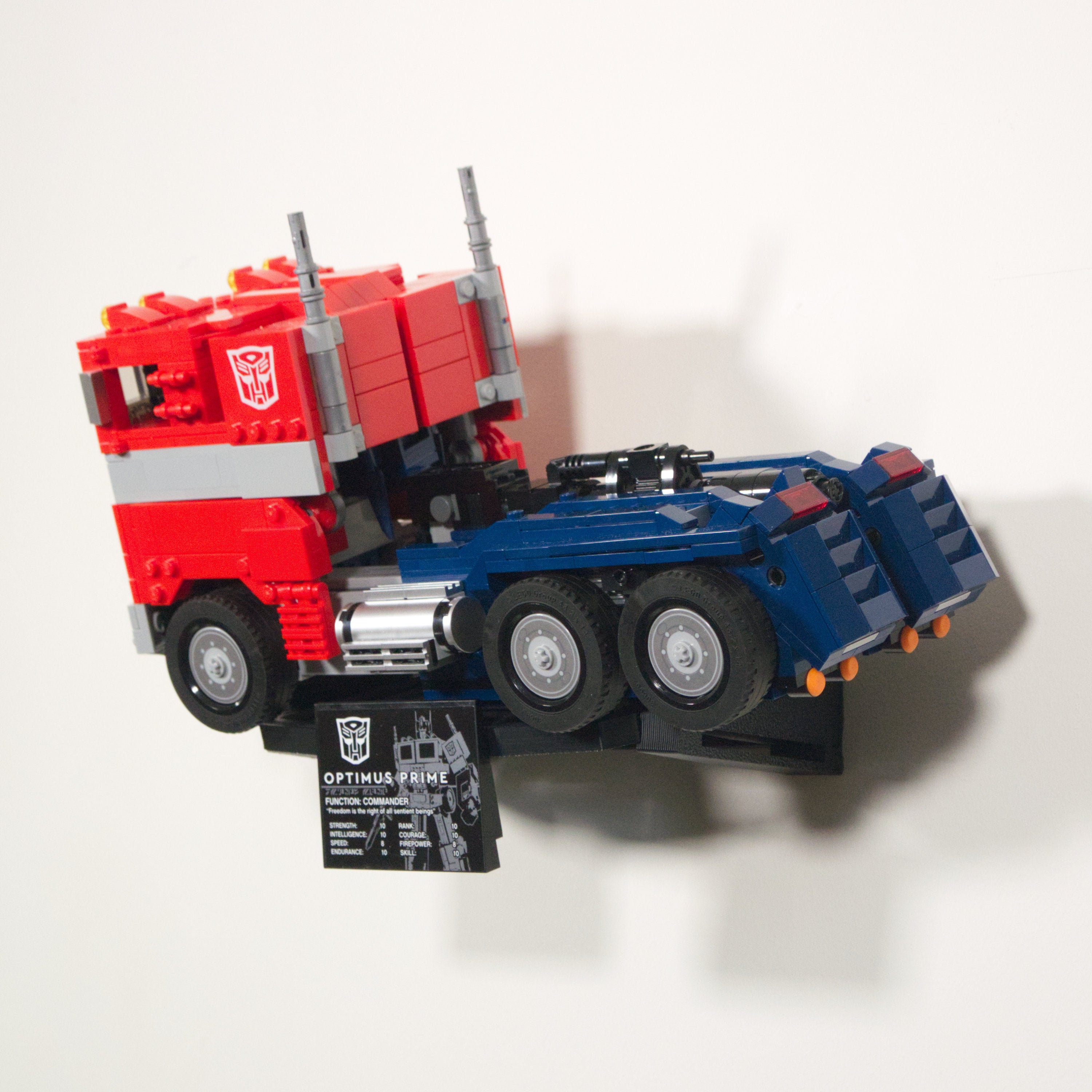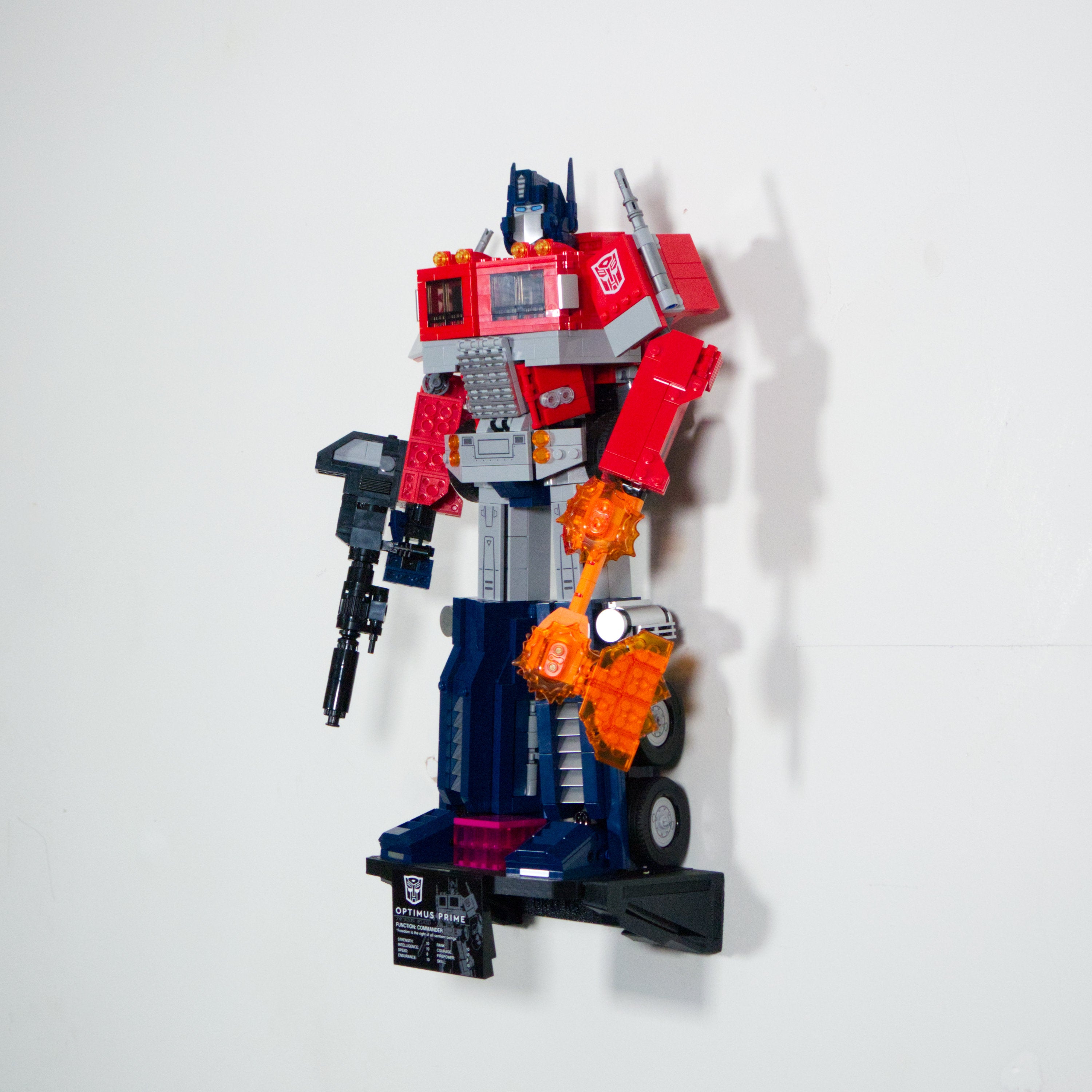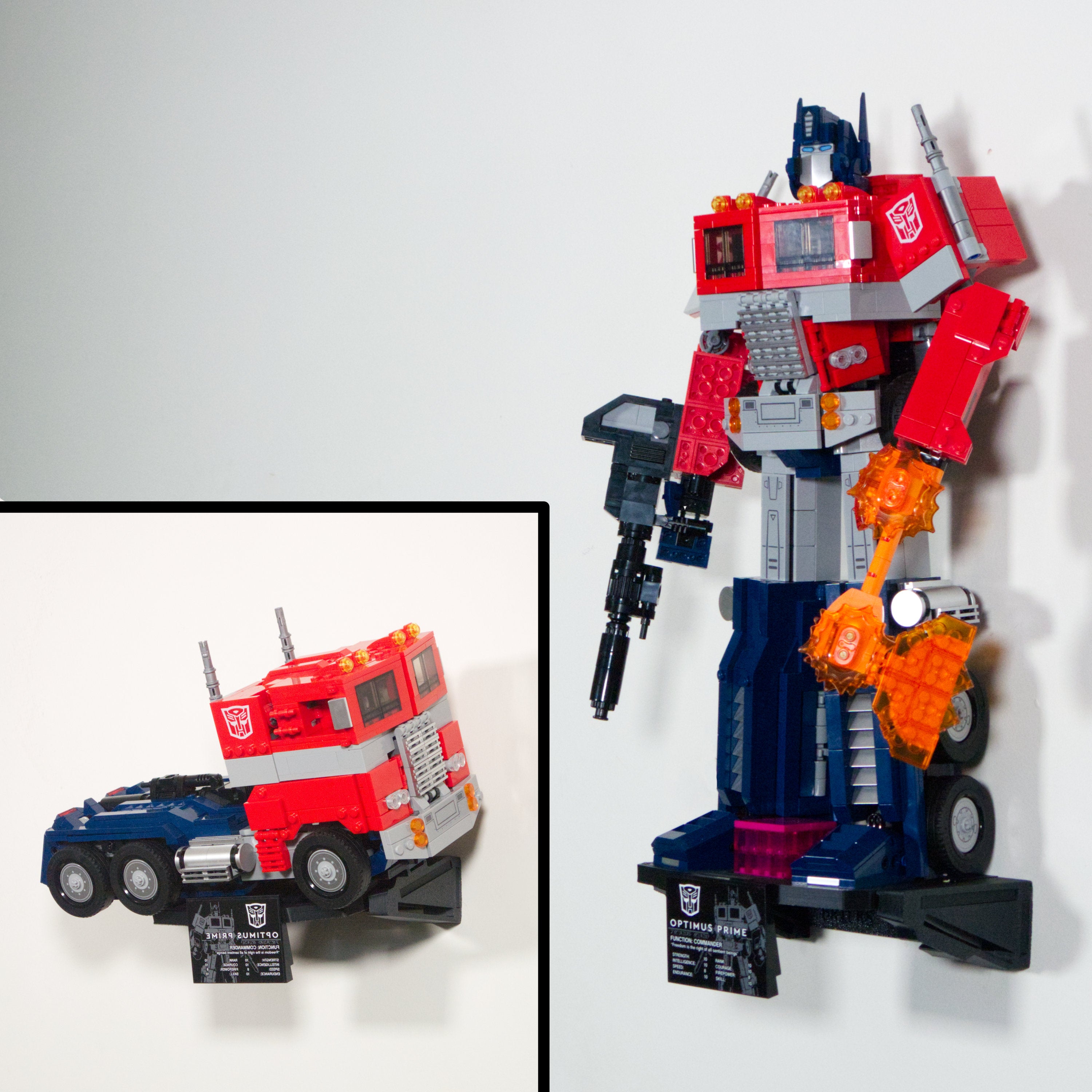 - 2-i-1 väggfäste designat för LEGO Icons Optimus Prime 10302