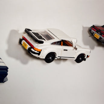 Dette funktionelle 2-i-1 vægbeslag er skabt til LEGO Creator Expert Porsche 911 (10295). Det gør det muligt at præsentere modellen enten vinklet eller plant mod væggen. Bilen kan let tages ned fra holderen, og beslaget monteres nemt med en enkelt fastgørelse for et stilrent udtryk i hjemmet.