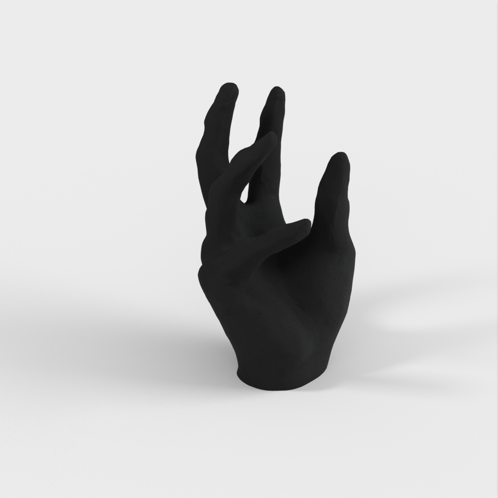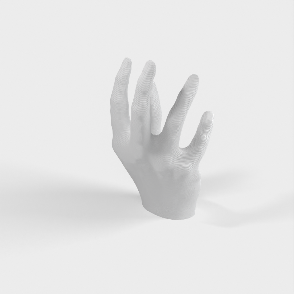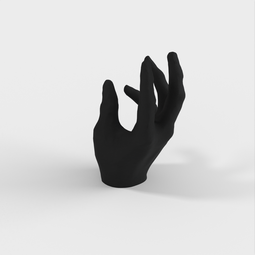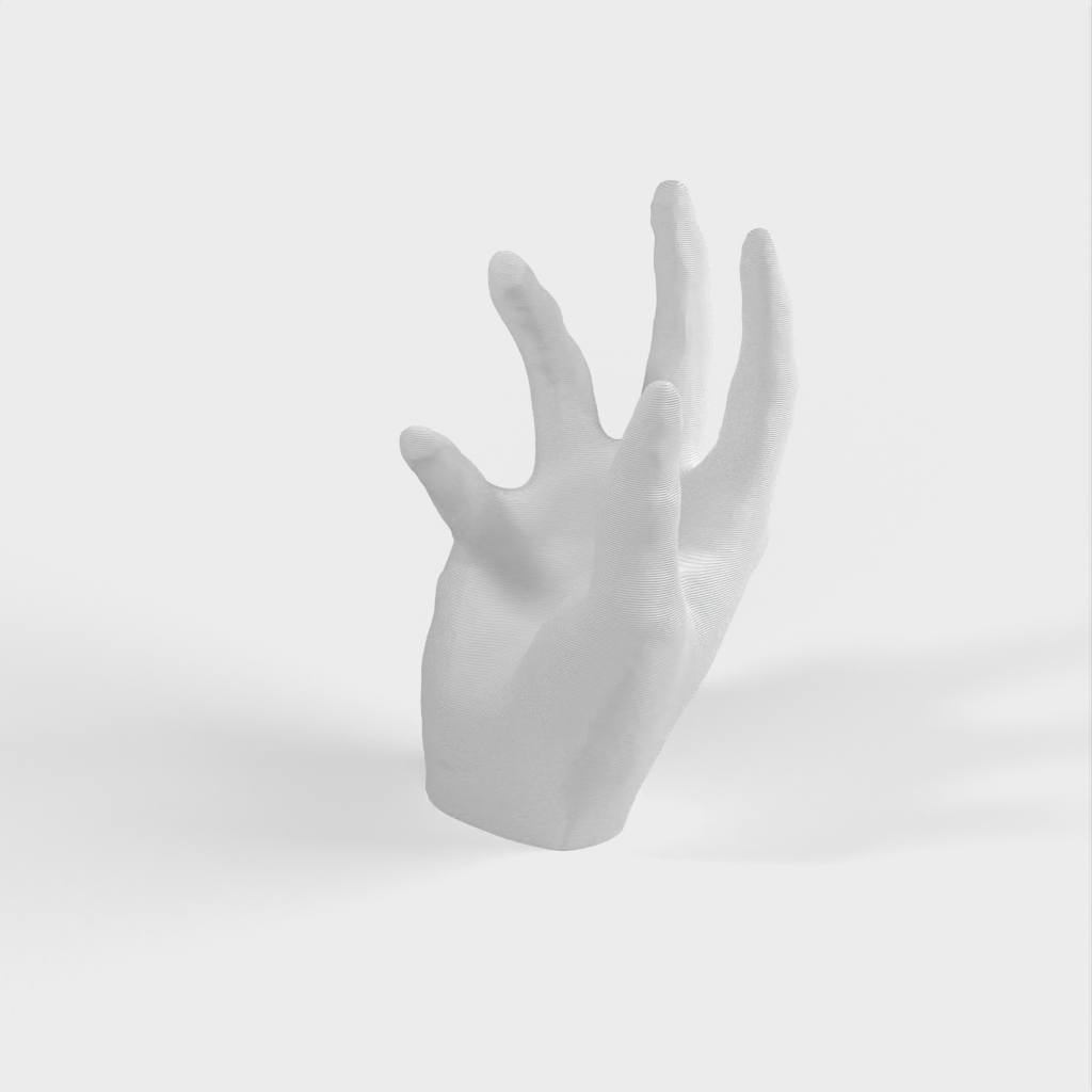 iPhone hand är en perfekt lösning för att förvara din smartphone på skrivbordet. Denna 3D-skannade kopia av en hand är designad för att hålla din iPhone eller någon annan smartphone. Den är designad för optimal utskrift utan stödmaterial.