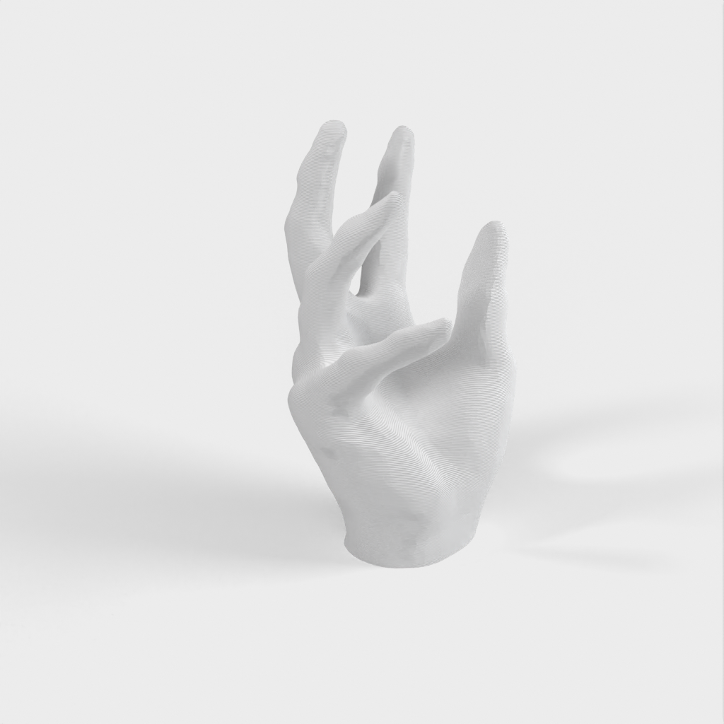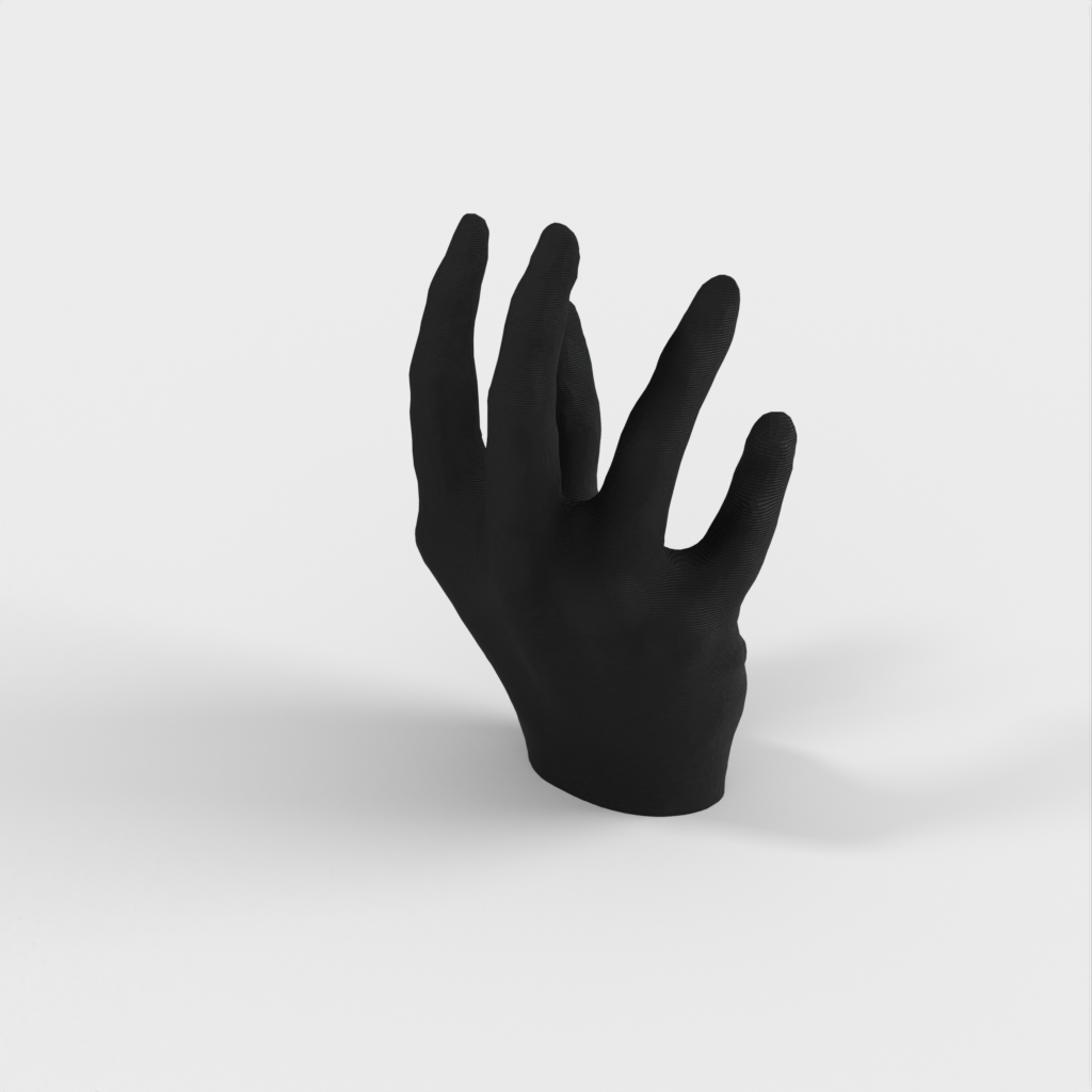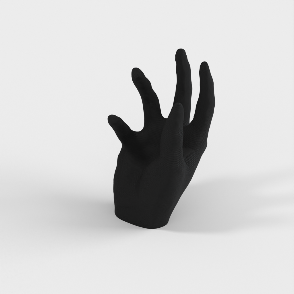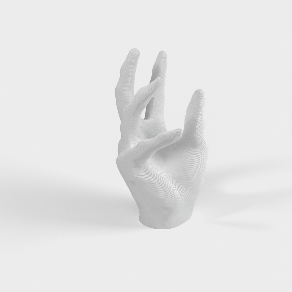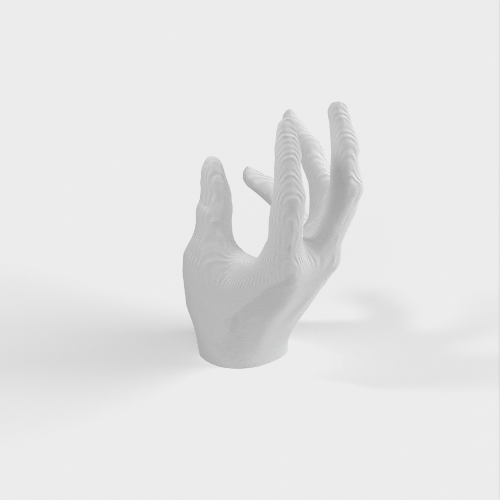 iPhone hand är en perfekt lösning för att förvara din smartphone på skrivbordet. Denna 3D-skannade kopia av en hand är designad för att hålla din iPhone eller någon annan smartphone. Den är designad för optimal utskrift utan stödmaterial.