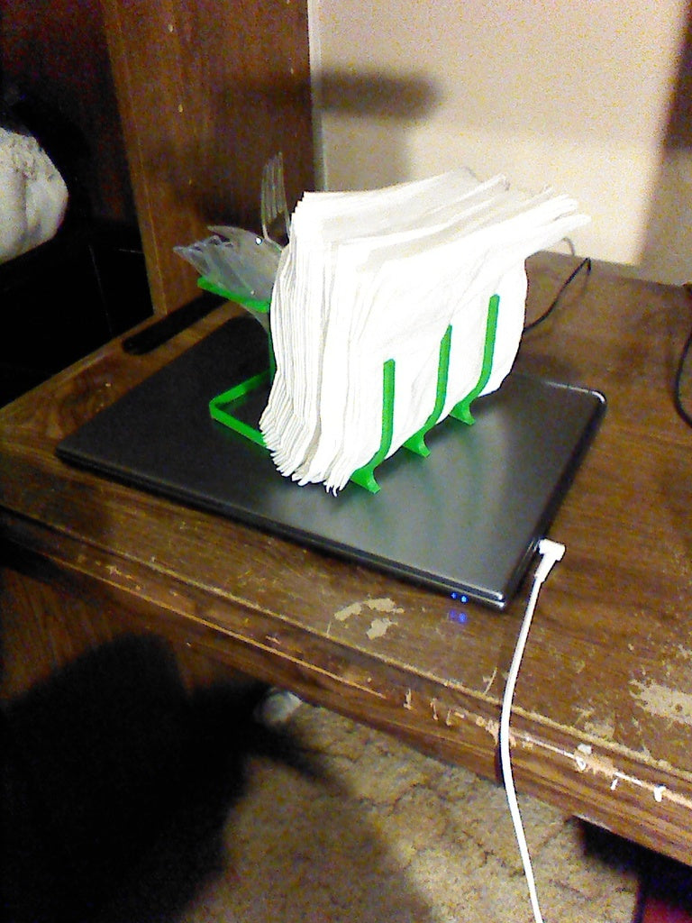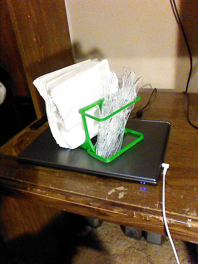 Detta är en 5-delad, lätt att montera, 3D-printad servett och bestickhållare. Perfekt för att hålla ditt bord snyggt och organiserat. Denna funktionella och vackra servett- och bestickhållare är redo att sätta en touch av stil till din inredning.