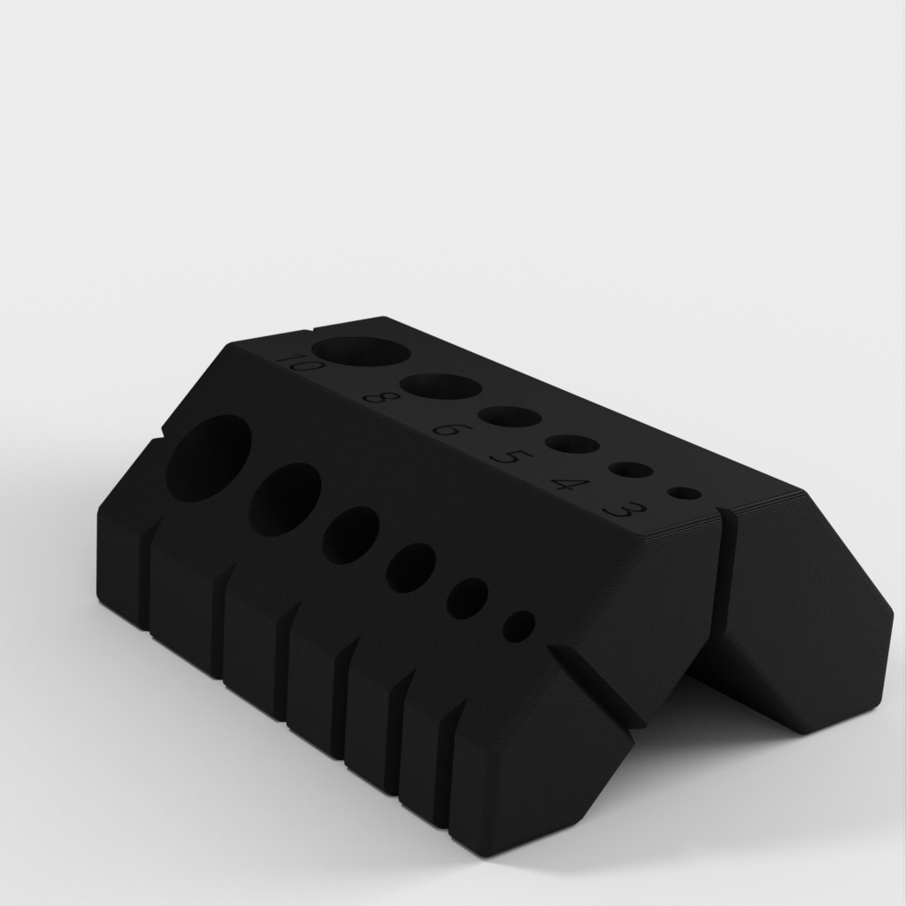 Denna användarvänliga 90 och 45 graders borrguide är designad för att göra det enkelt för dig att borra i kanter och stänger. Den innehåller också en speciell funktion som gör att du kan borra perfekt placerad i mitten av 2 cm trä.