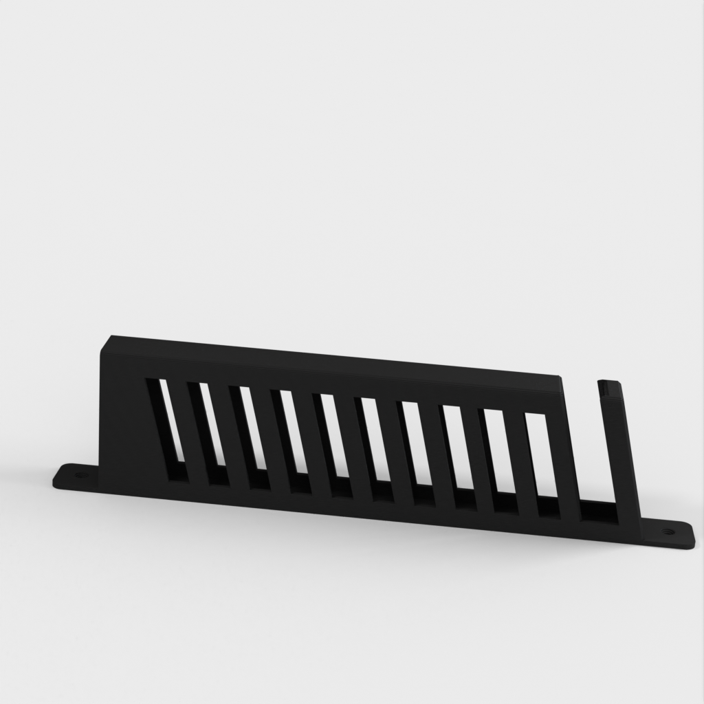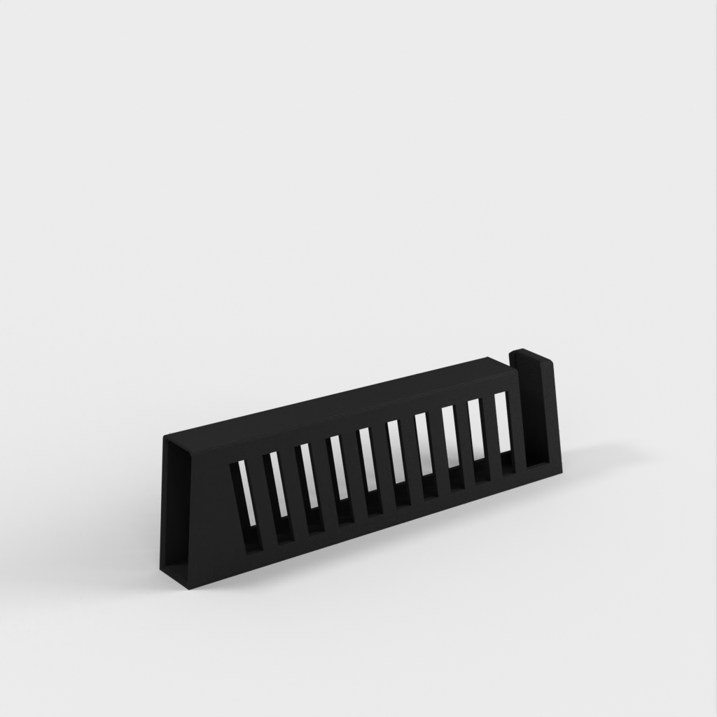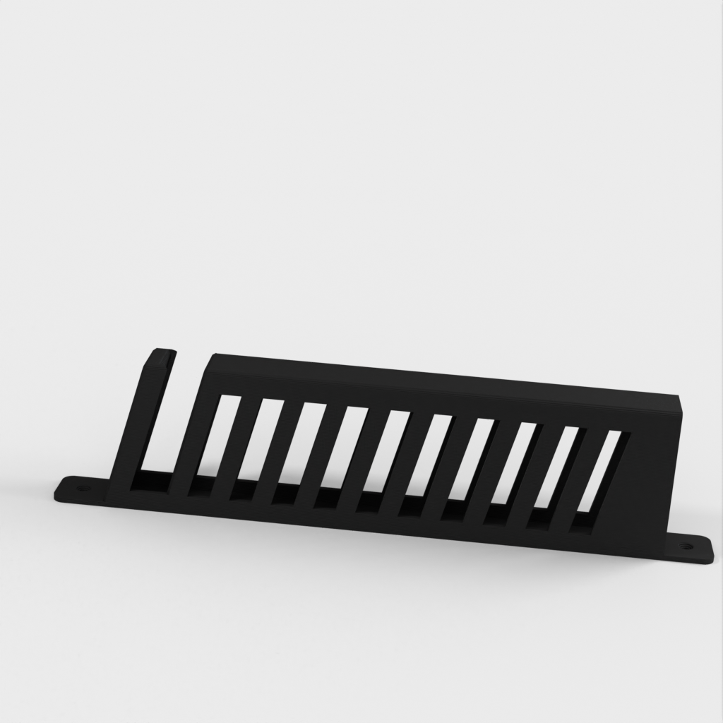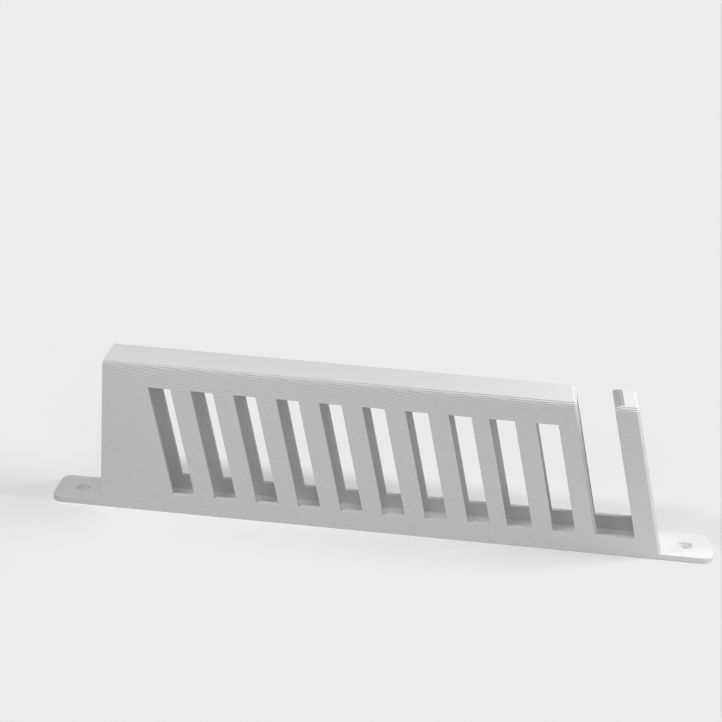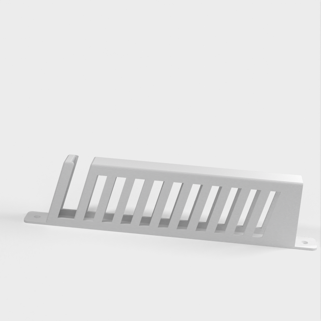 AA batterihållare är designad för att säkra dina AA-batterier på ett organiserat och säkert sätt. Denna hållare kan fästas på vilken yta som helst med dubbelhäftande tejp för enkel installation, eller så kan du också välja att fästa den med skruvar för extra stabilitet. Denna produkt säkerställer enkel åtkomst till batterier vid behov och förvarar dem på ett säkert ställe när de inte används.