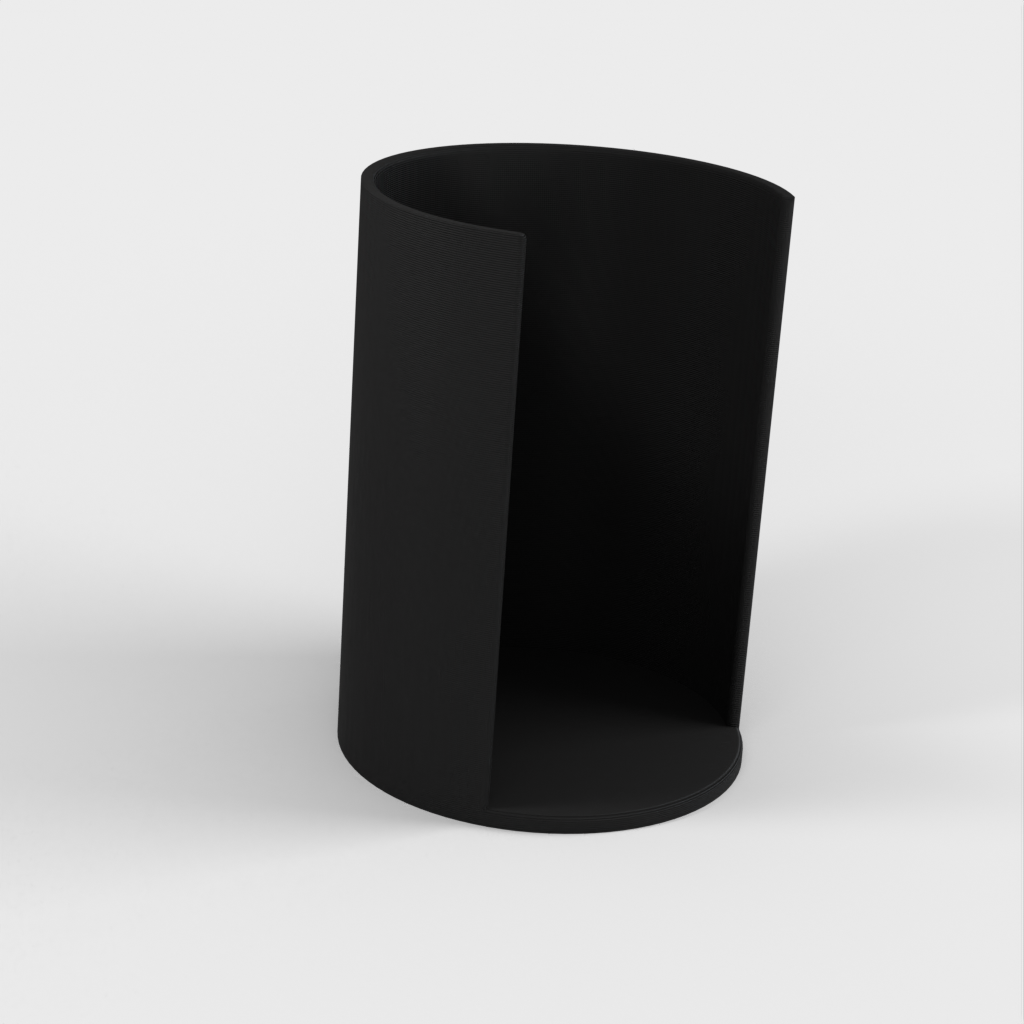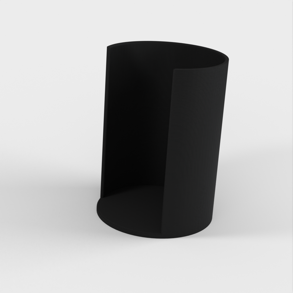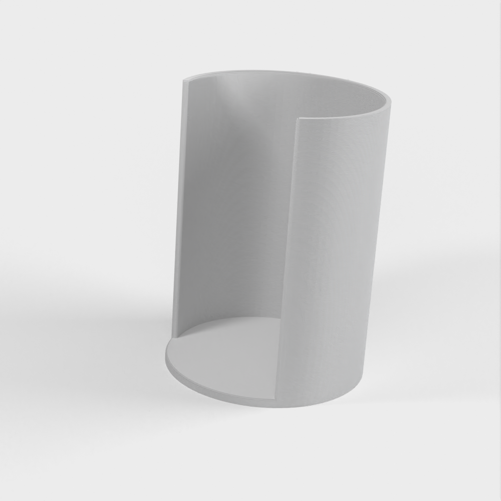 Aeropress filterhållare (hög), med plats för två kompletta filterpaket samtidigt. Den har tunnare väggar och golv för att påskynda utskriften. De relevanta måtten är 66 mm ID med en 110-graders båge utskuren. Ett dubbelstapelfilter är cirka 90 mm, detta är något högre för att ge plats åt kolven.