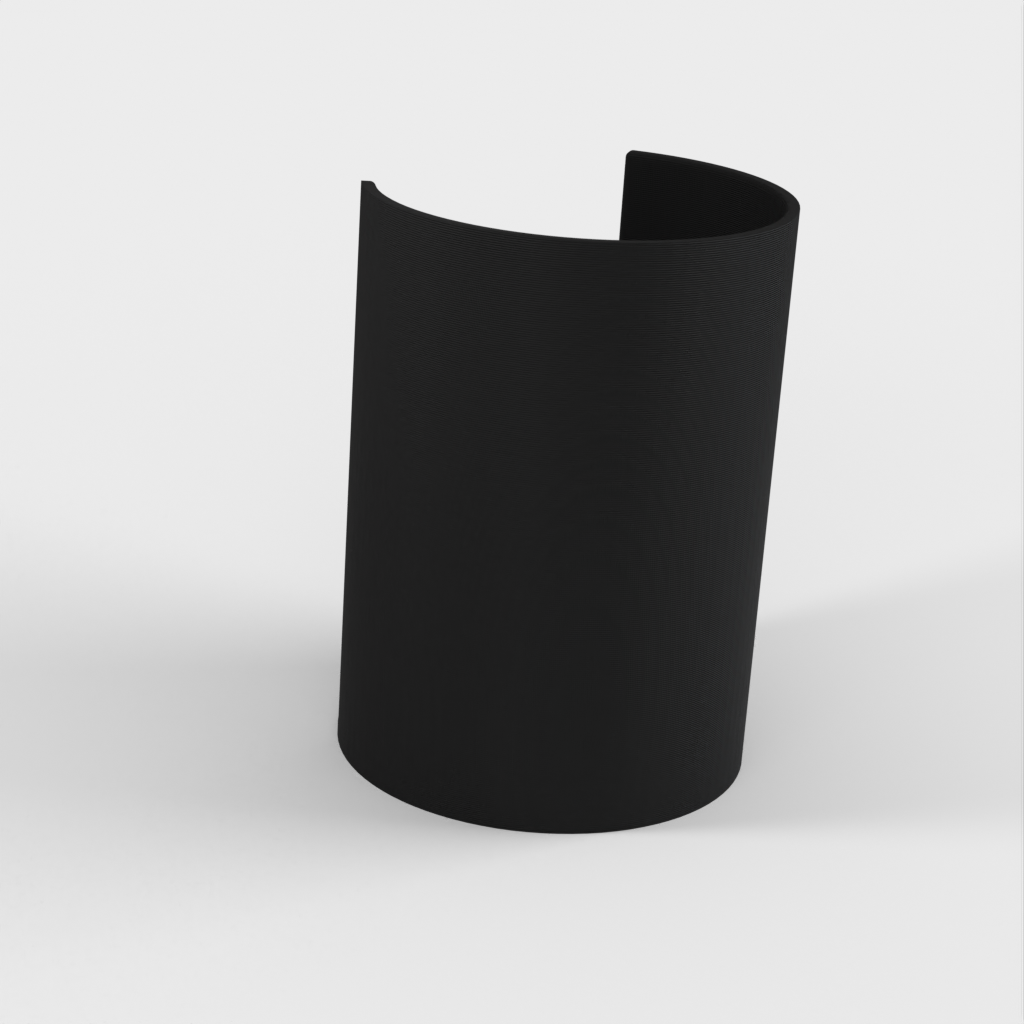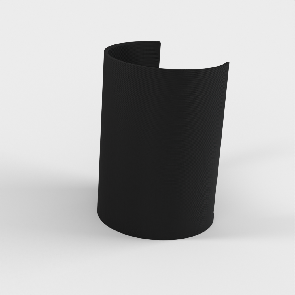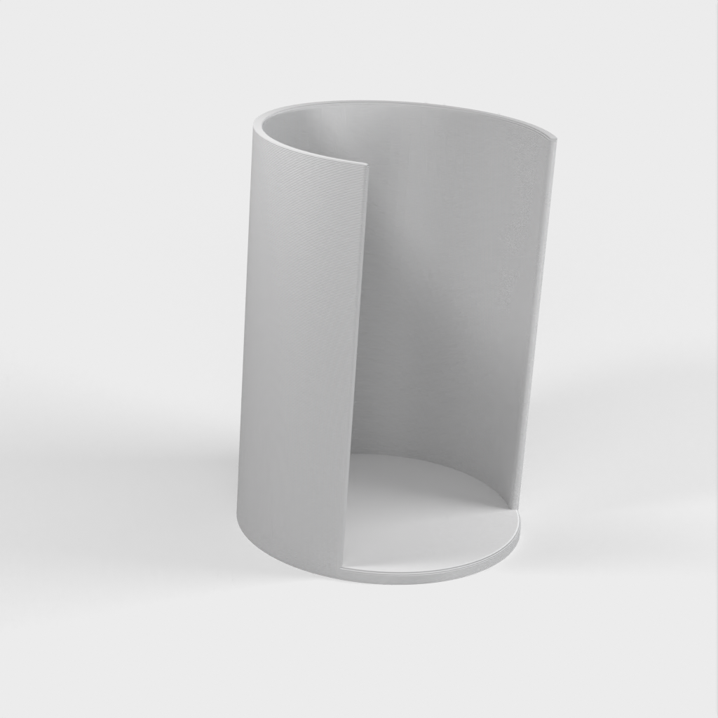 Aeropress filterhållare (hög), med plats för två kompletta filterpaket samtidigt. Den har tunnare väggar och golv för att påskynda utskriften. De relevanta måtten är 66 mm ID med en 110-graders båge utskuren. Ett dubbelstapelfilter är cirka 90 mm, detta är något högre för att ge plats åt kolven.