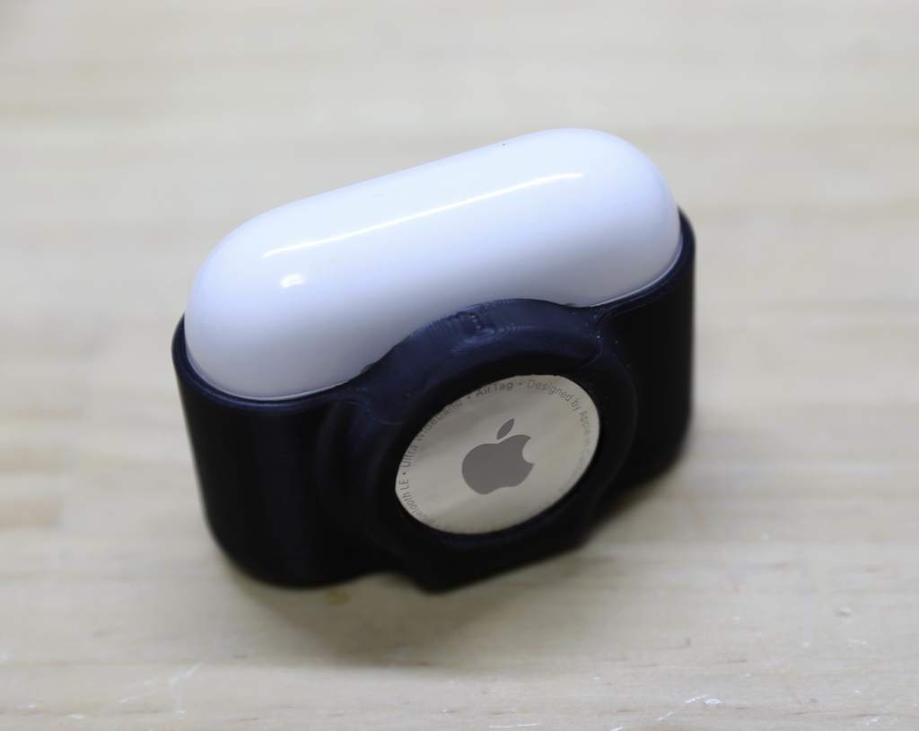 Fodral för att fästa AirTags på AirPods Pro. Trådlös laddning är också möjlig.