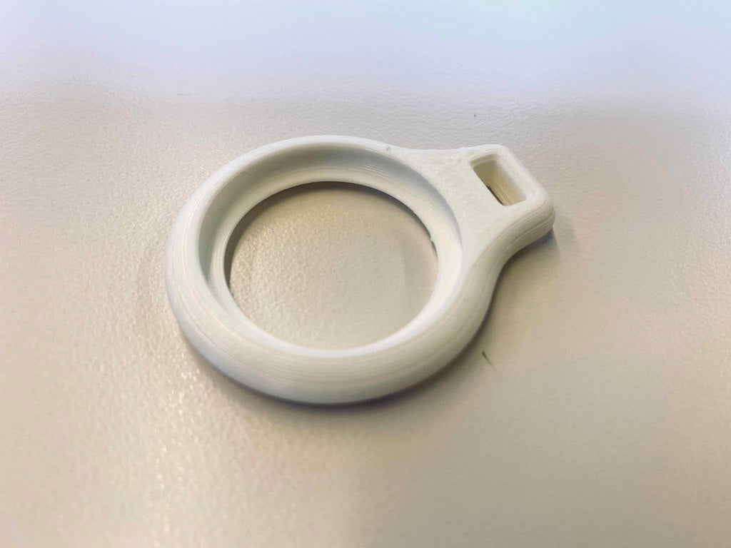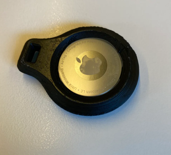AirTag säkerhetshållare kompatibel med nyckelring. Låter dig säkert gömma din AirTag inuti hållaren.
