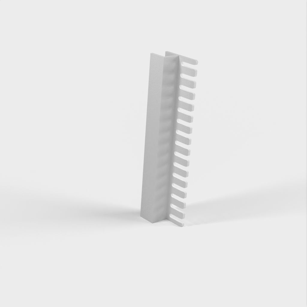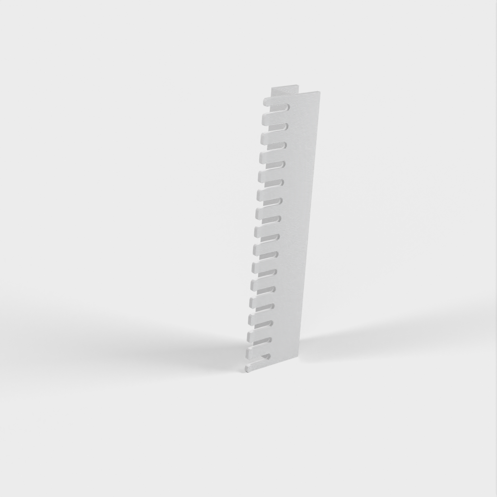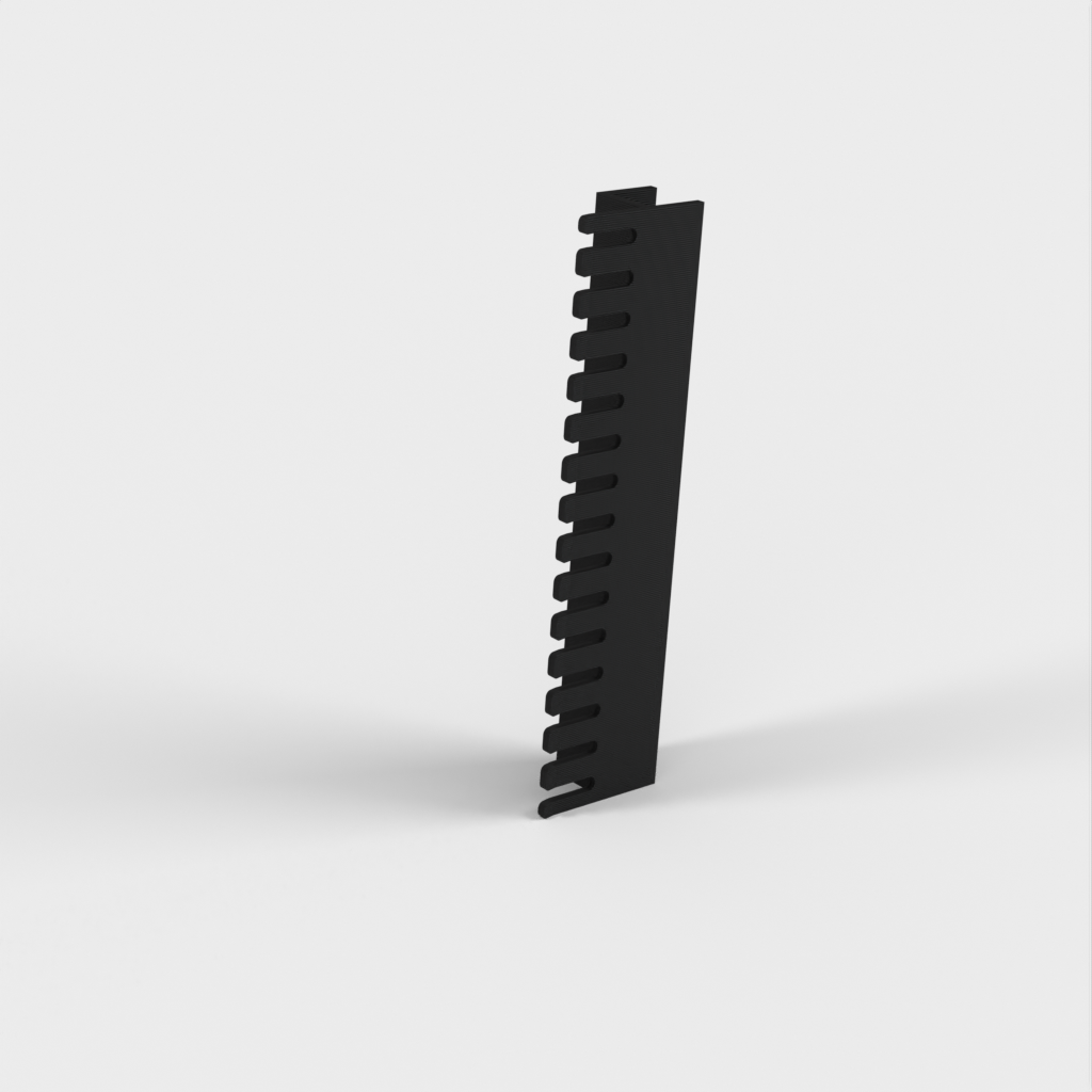 En krokodilklämma kabelfördelare, designad för att fästas på toppen av ett bord (19 mm) utan att använda skruvar. Denna produkt kan även användas för andra kablar med en diameter på upp till ca. 5 mm. Idealisk för att organisera och hantera kablar i en verkstad, kontor eller vilken arbetsstation som helst.