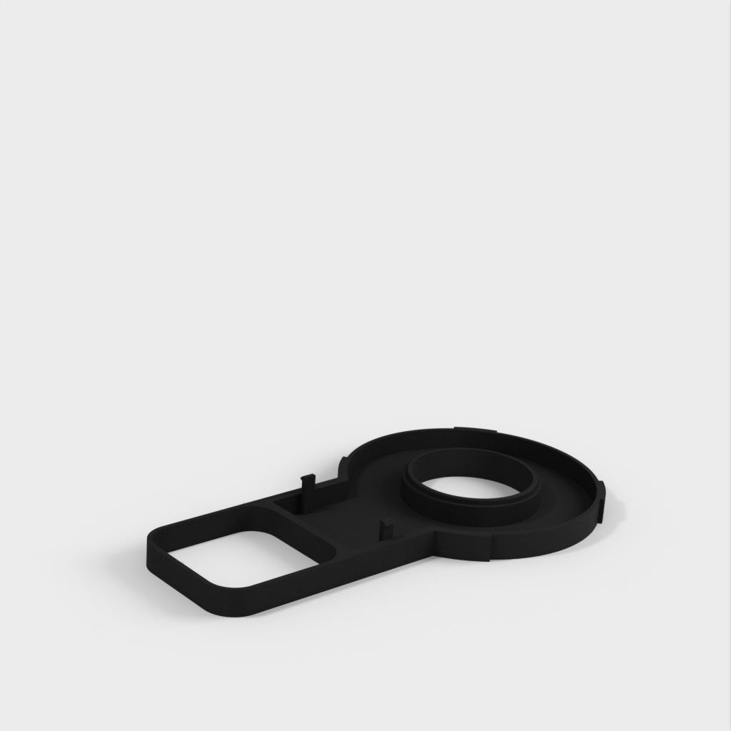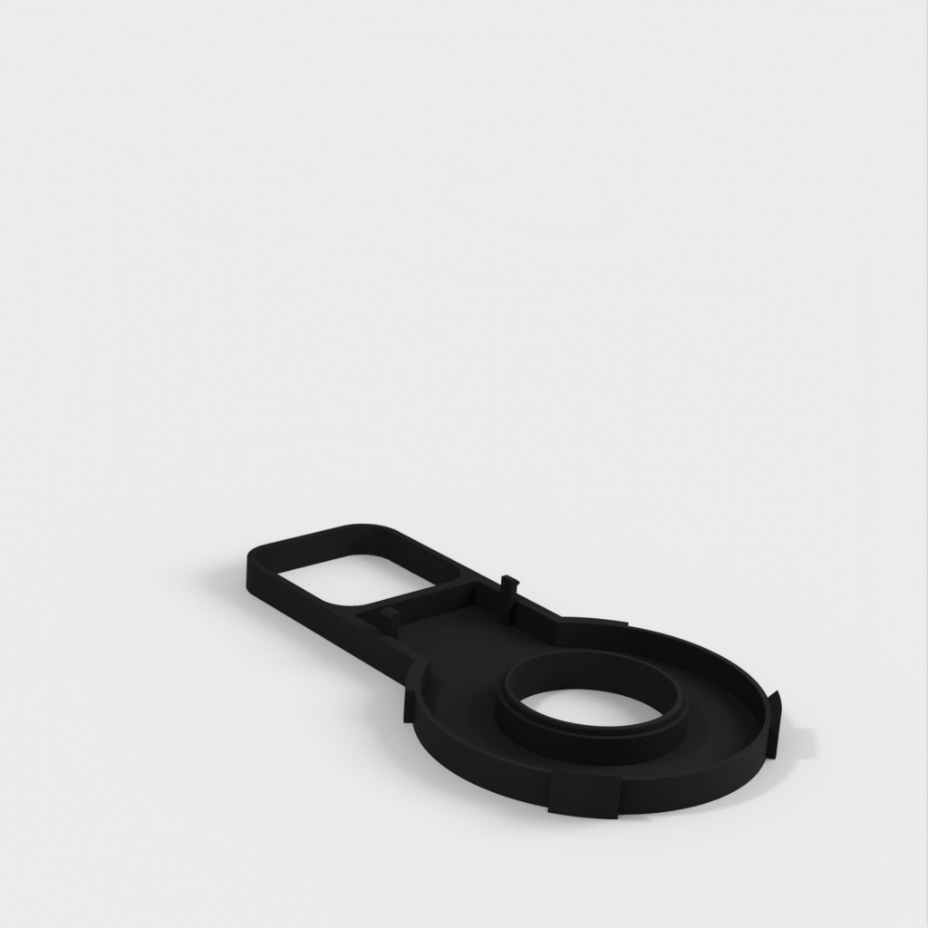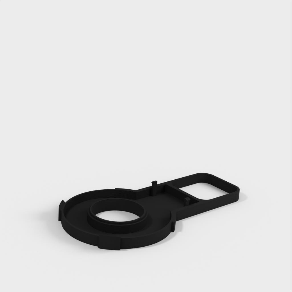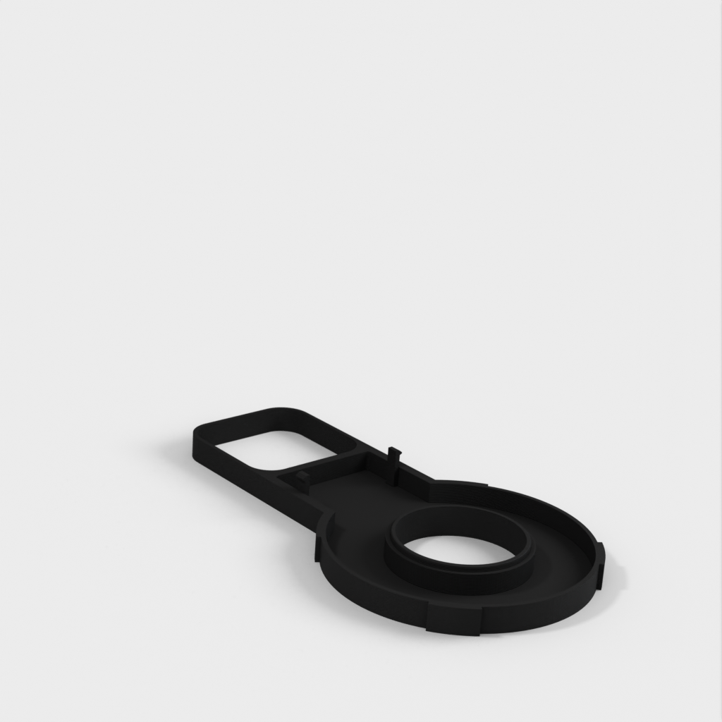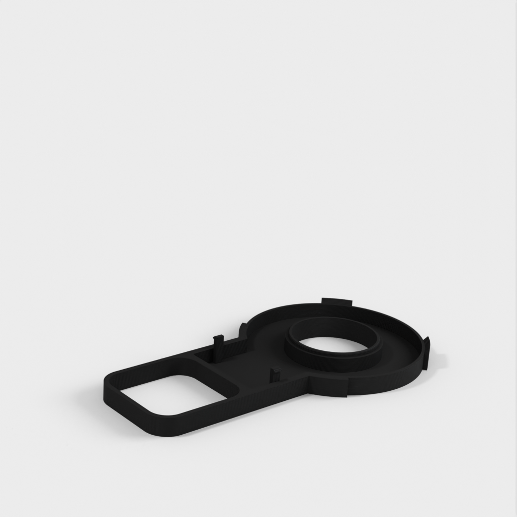 Beskrivning av Amazon Echo Dot (3:e generationens) väggkontaktfäste. Detta fäste är designat för att fästa din Echo Dot direkt i vägguttaget, vilket hjälper till att dölja sladden och spara utrymme. Monteringen är utformad för att inte blockera högtalarna på din Echo Dot, vilket säkerställer en optimal ljudupplevelse. Förutom Echo Dot-hållaren innehåller satsen en bas som glider på undersidan av strömförsörjningen och gör det möjligt att linda sladden runt en central "kärna", en topp som glider ner över strömförsörjningens ovansida och snäpper fast basen och ett skydd för att täcka området där kabeln går in i Echo Dot.