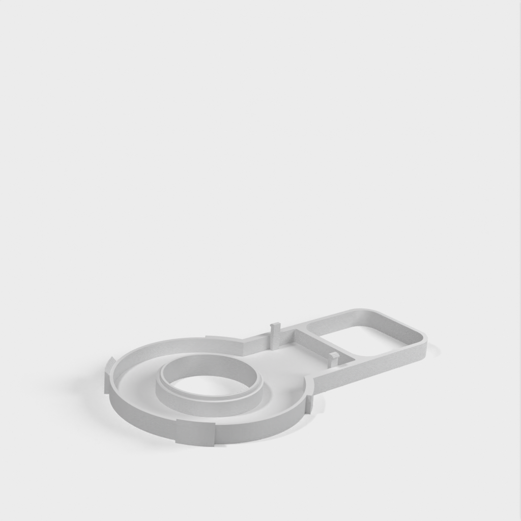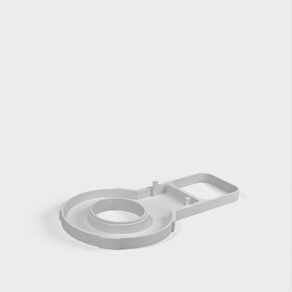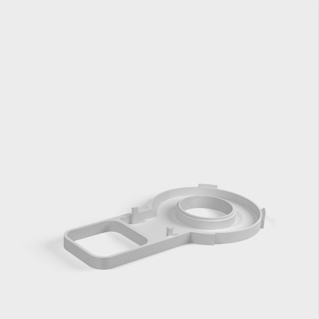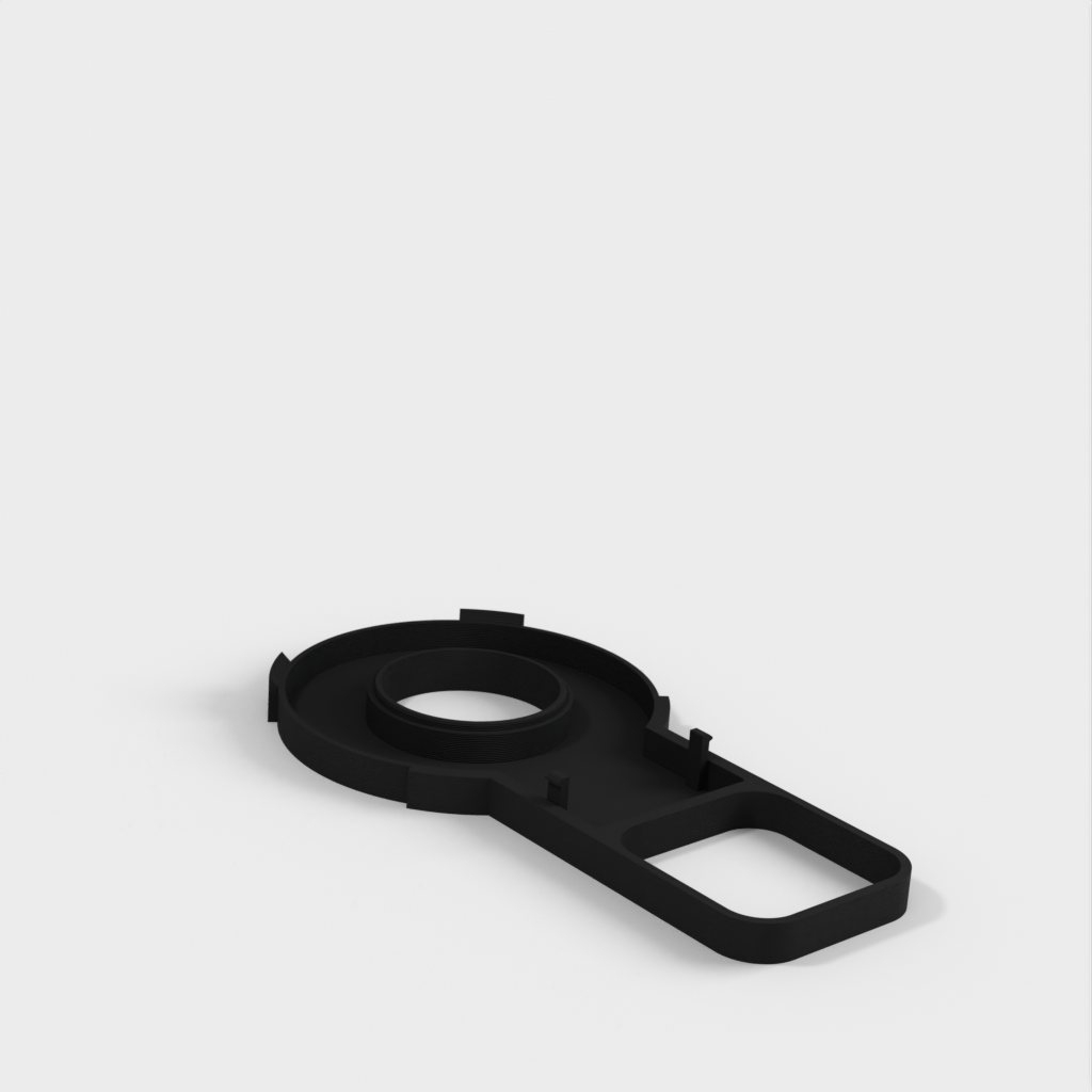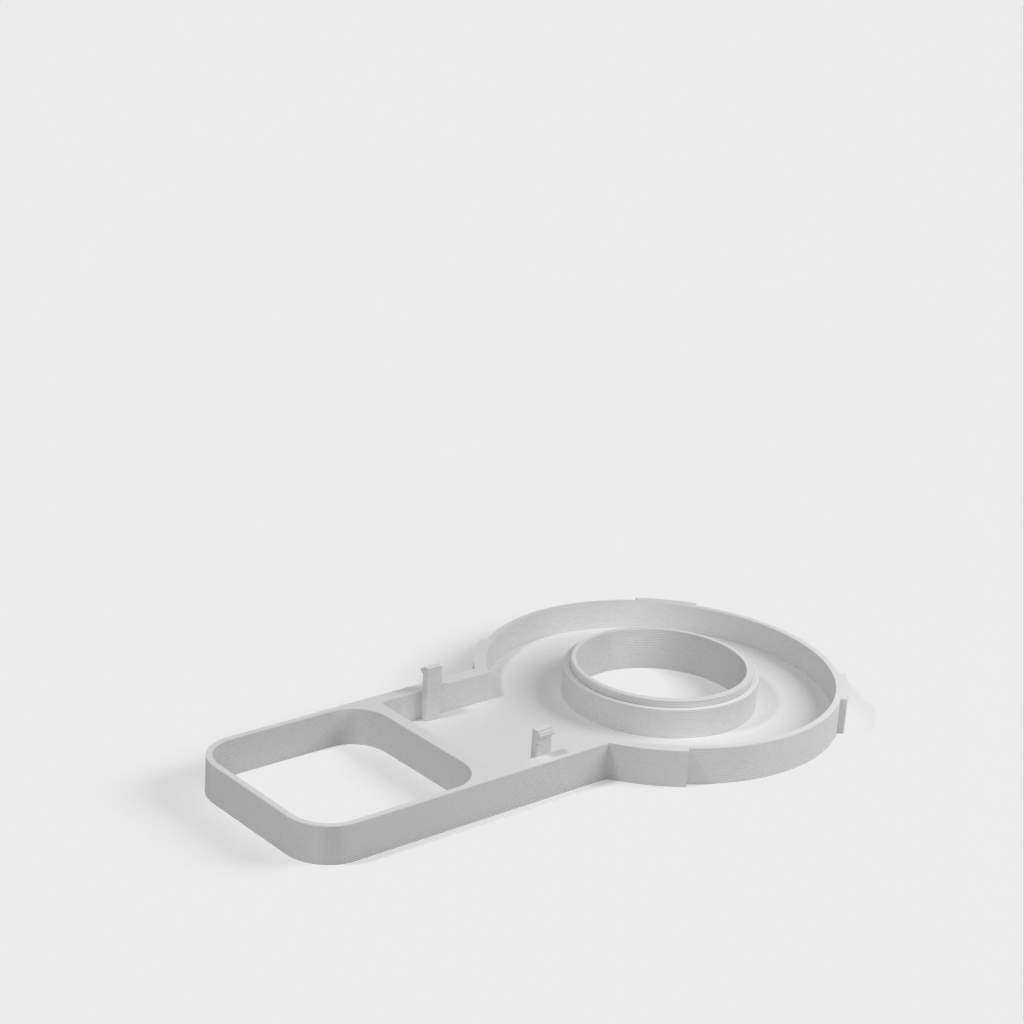 Beskrivning av Amazon Echo Dot (3:e generationens) väggkontaktfäste. Detta fäste är designat för att fästa din Echo Dot direkt i vägguttaget, vilket hjälper till att dölja sladden och spara utrymme. Monteringen är utformad för att inte blockera högtalarna på din Echo Dot, vilket säkerställer en optimal ljudupplevelse. Förutom Echo Dot-hållaren innehåller satsen en bas som glider på undersidan av strömförsörjningen och gör det möjligt att linda sladden runt en central "kärna", en topp som glider ner över strömförsörjningens ovansida och snäpper fast basen och ett skydd för att täcka området där kabeln går in i Echo Dot.