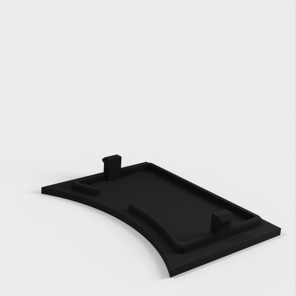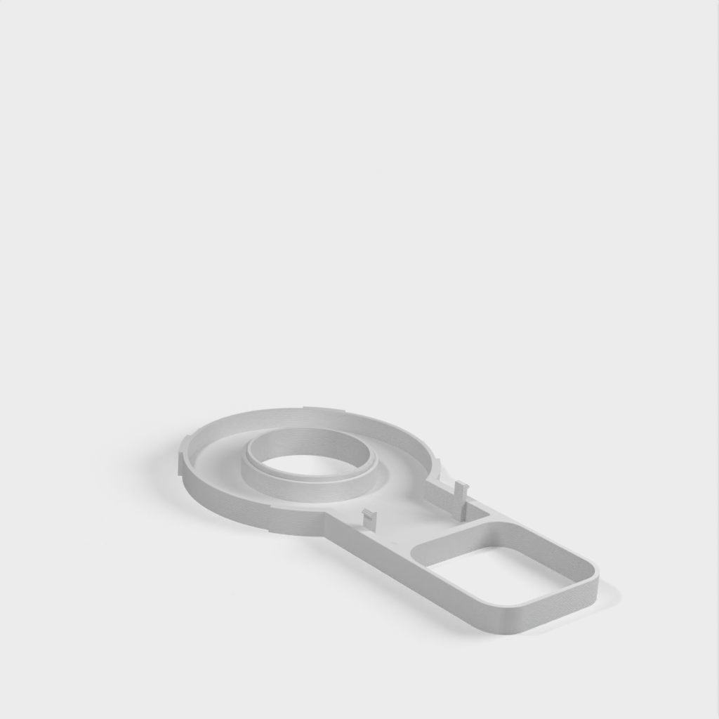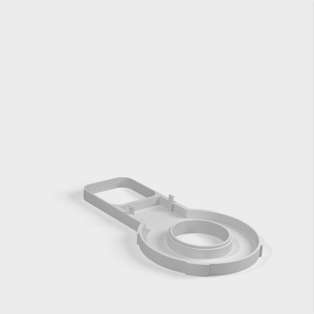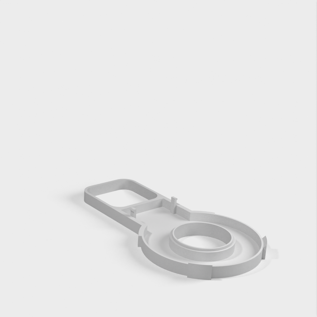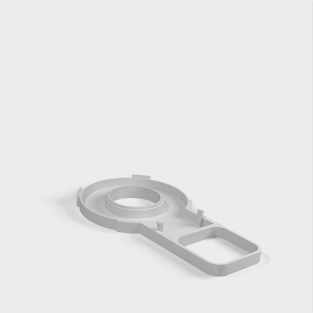 Beskrivning av Amazon Echo Dot (3:e generationens) väggkontaktfäste. Detta fäste är designat för att fästa din Echo Dot direkt i vägguttaget, vilket hjälper till att dölja sladden och spara utrymme. Monteringen är utformad för att inte blockera högtalarna på din Echo Dot, vilket säkerställer en optimal ljudupplevelse. Förutom Echo Dot-hållaren innehåller satsen en bas som glider på undersidan av strömförsörjningen och gör det möjligt att linda sladden runt en central "kärna", en topp som glider ner över strömförsörjningens ovansida och snäpper fast basen och ett skydd för att täcka området där kabeln går in i Echo Dot.
