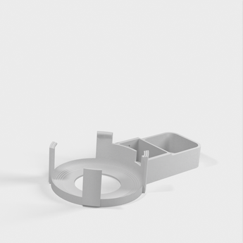 Beskrivning av Amazon Echo Dot (3:e generationens) väggkontaktfäste. Detta fäste är designat för att fästa din Echo Dot direkt i vägguttaget, vilket hjälper till att dölja sladden och spara utrymme. Monteringen är utformad för att inte blockera högtalarna på din Echo Dot, vilket säkerställer en optimal ljudupplevelse. Förutom Echo Dot-hållaren innehåller satsen en bas som glider på undersidan av strömförsörjningen och gör det möjligt att linda sladden runt en central "kärna", en topp som glider ner över strömförsörjningens ovansida och snäpper fast basen och ett skydd för att täcka området där kabeln går in i Echo Dot.