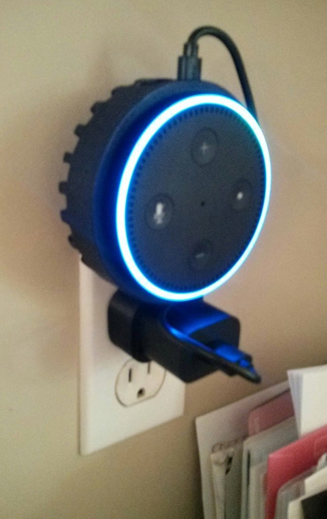 Detta tillbehör gör att du kan montera 2:a generationens Echo Dot direkt i eluttaget du ansluter Dot till. Detta görs i kombination med TinkeringT:s Amazon Echo Dot Wall Mount .