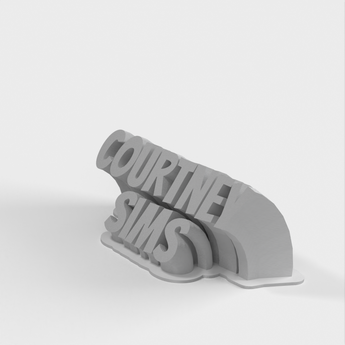 Denna anpassade namnskylt är designad för att visa namnet "Courtney Sims". Den har en unik rund bas och texturerade bokstäver som ger personlighet och en speciell touch till alla skrivbord, bokhyllor eller arbetsplatser. Namnskylten är skapad med precision och noggrannhet, vilket återspeglar den höga kvaliteten och omsorgen i designprocessen.