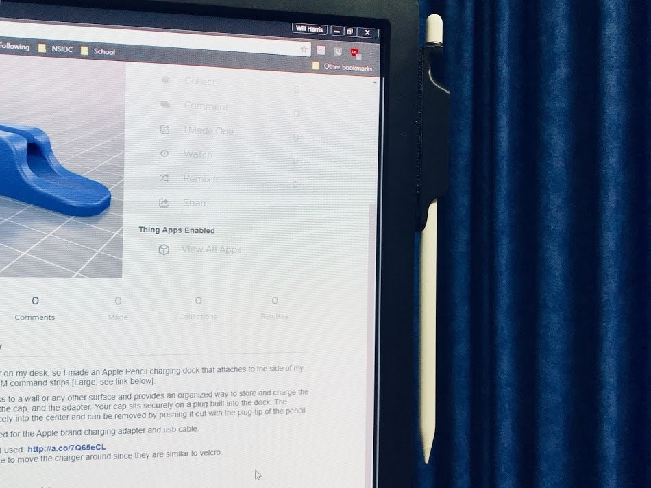 Detta är en laddningsdocka för Apple Pencil som monteras på sidan av din datorskärm med hjälp av 3M-kommandoremsor. Dockan håller säkert och organiserar din Apple Pencil, dess kapsel och adapter. Den är designad för att fungera med Apples laddningsadapter och USB-kabel. Med 3M-remsor kan dockningsladdaren enkelt flyttas runt, eftersom de fungerar som kardborreband. För att säkerställa en tät passform är utrymmet för kabel och penna något åtdraget.