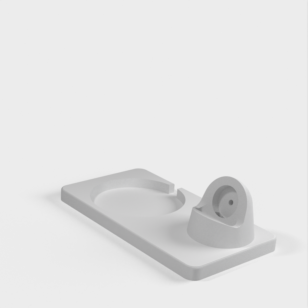 Apple Watch och iPhone laddningsdocka som kombinerar en Apple Watch laddningsdocka med en extra bas som kan innehålla en IKEA LIVBOJ. Kan användas för att hålla din Apple Watch och iPhone samtidigt under laddning, vilket gör den till ett idealiskt tillbehör för ditt skrivbord eller nattduksbord.
