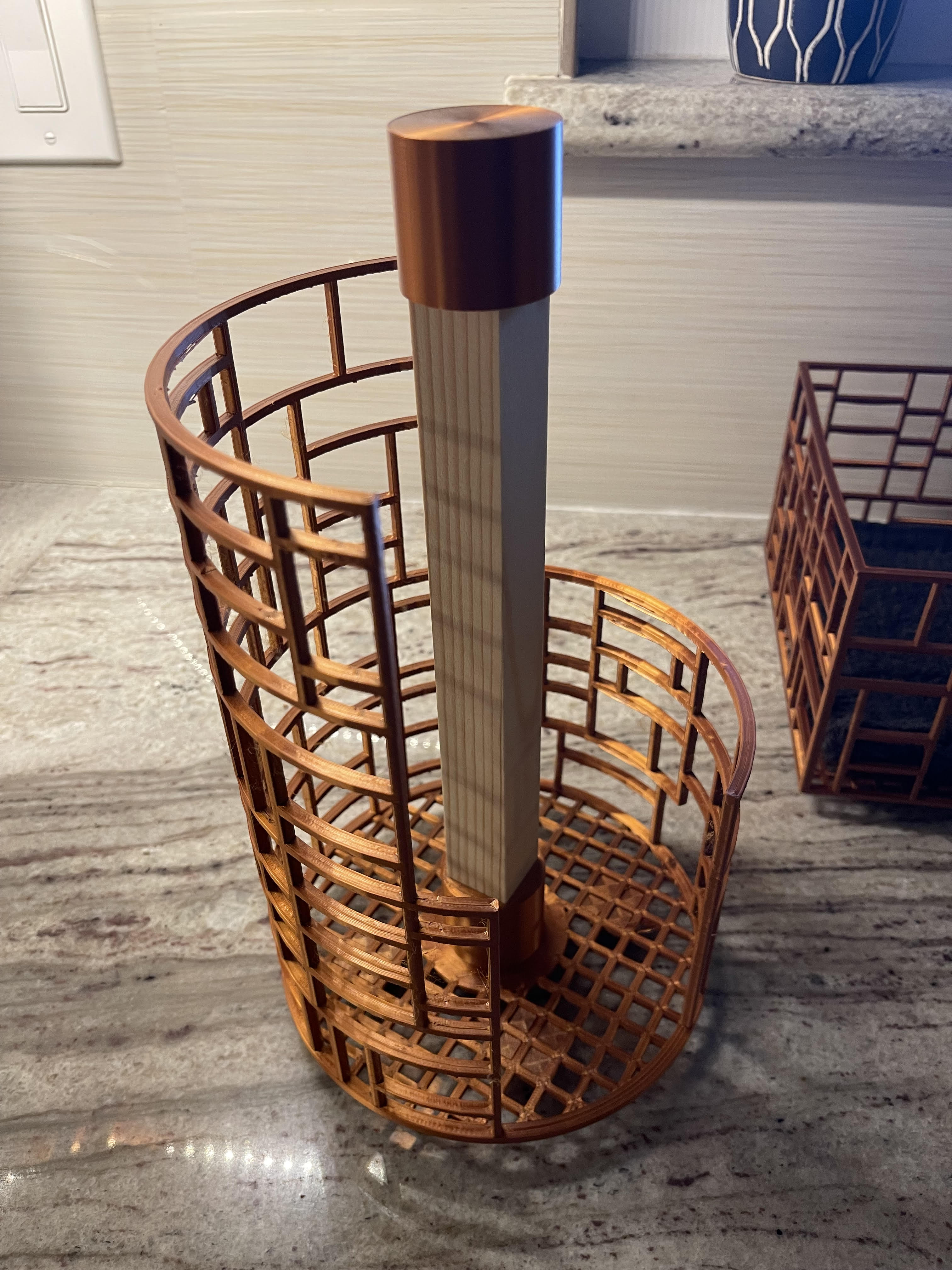 Denna hushållspappershållare är inte bara ett praktiskt föremål; det är ett dekorativt tillskott som möter vardagliga behov med stil.