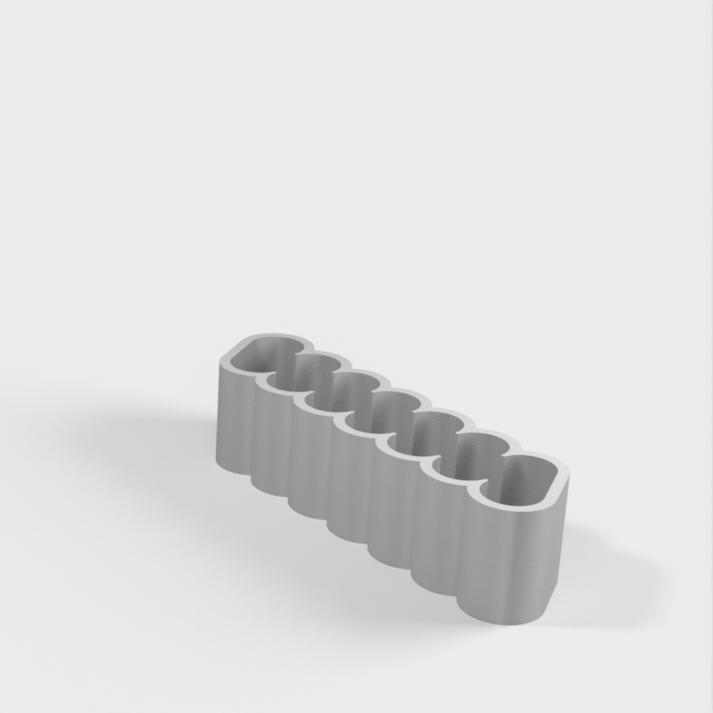 Dessa batterihållare är enkla att skriva ut och perfekta för förvaring av AA- och AAA-batterier. Hållare finns i olika konfigurationer som var och en rymmer upp till 16 batterier.