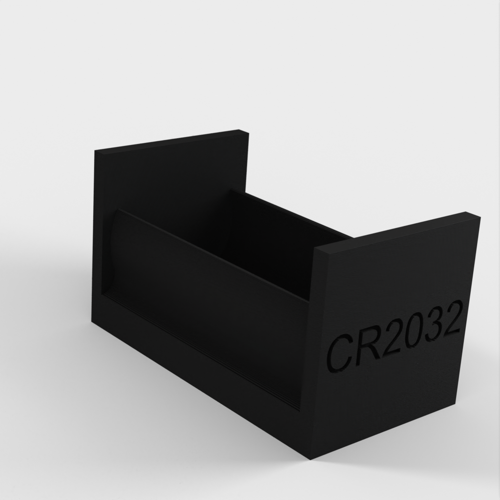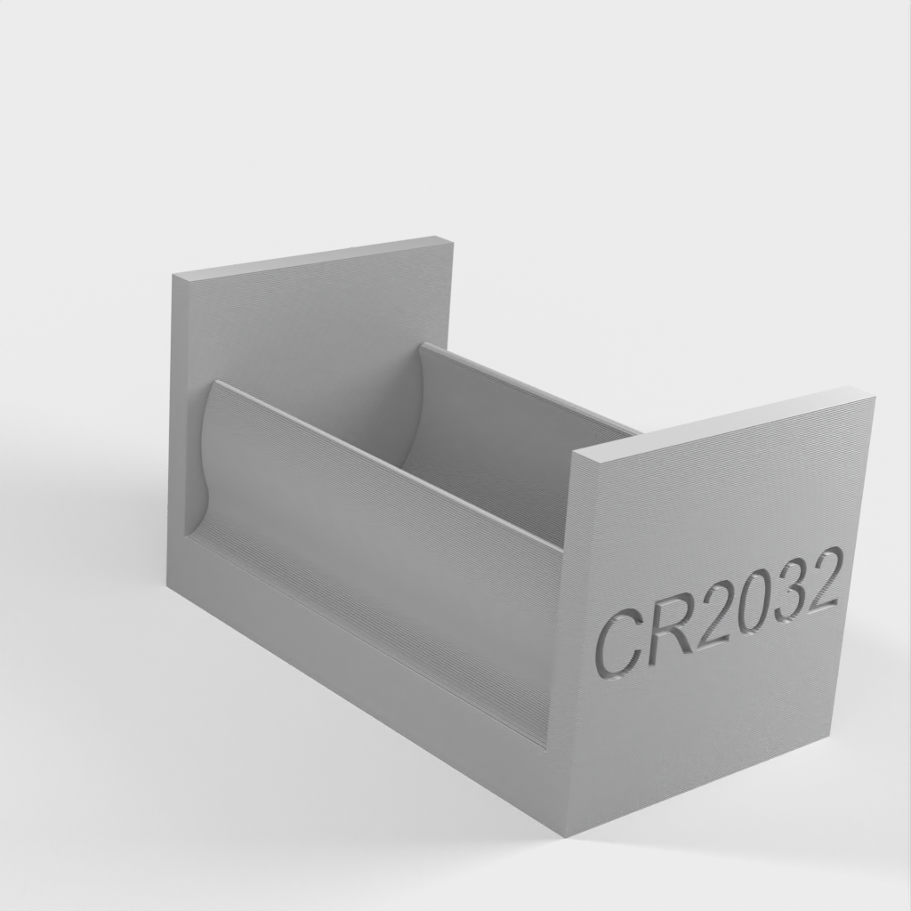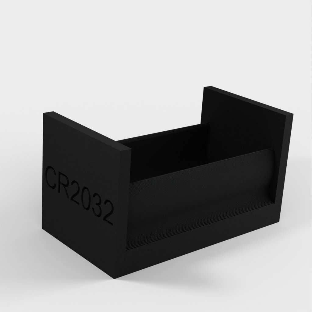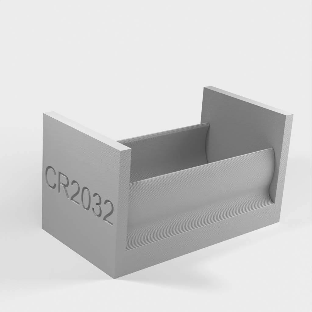 CR2032-batterierna hålls säkert på plats med klämmor. För uppladdningsbara batterier kan du behöva skala upp modellerna med 3-5 % (i x- och y-axeln).