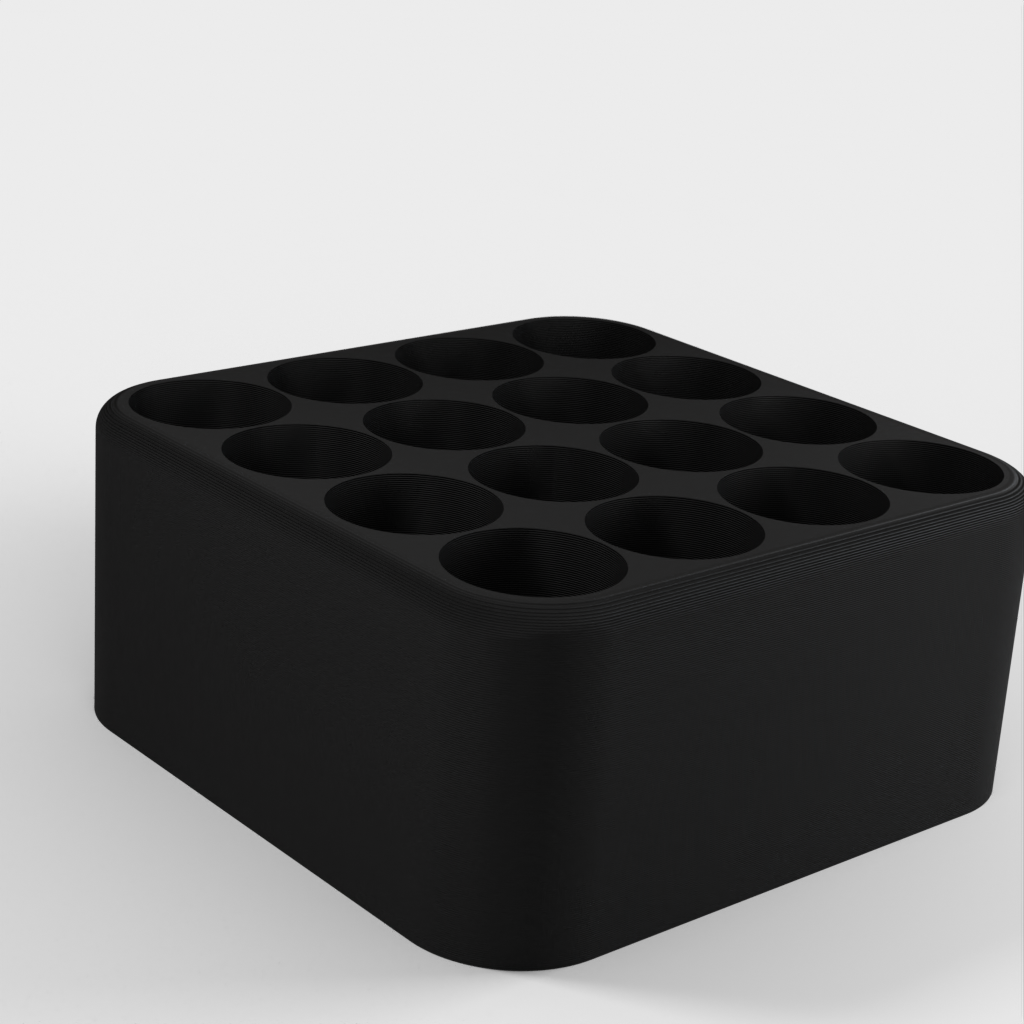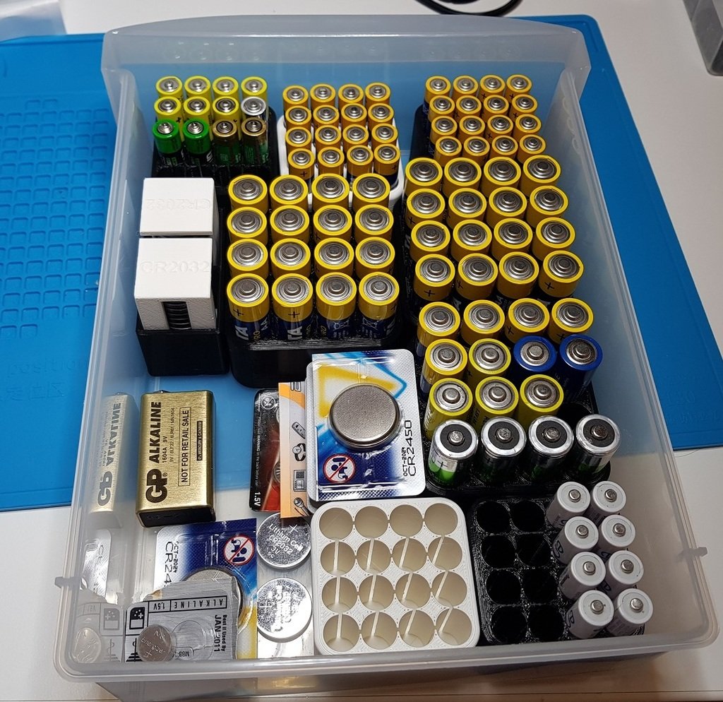 Detta är en enkel batterihållare, designad för att göra dina lådor mer organiserade. Batterihållaren kan användas för AAA-, AA- och CR2032-batterier.