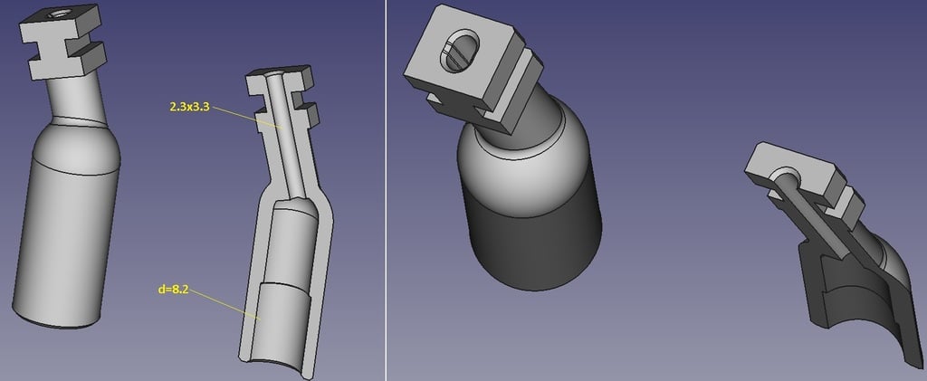 Fästet är exakt dimensionerat; hålet för kablarna genom fästet är elliptiskt (2,3 x 3,3 mm) och hålet för telepluggen har en diameter på 8,2 mm. För att säkerställa optimal passform kan det vara nödvändigt att göra mindre justeringar av det ursprungliga hörlurshöljet.
