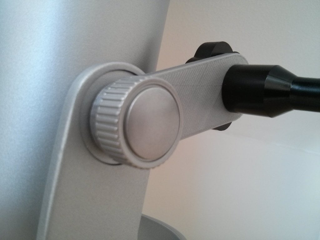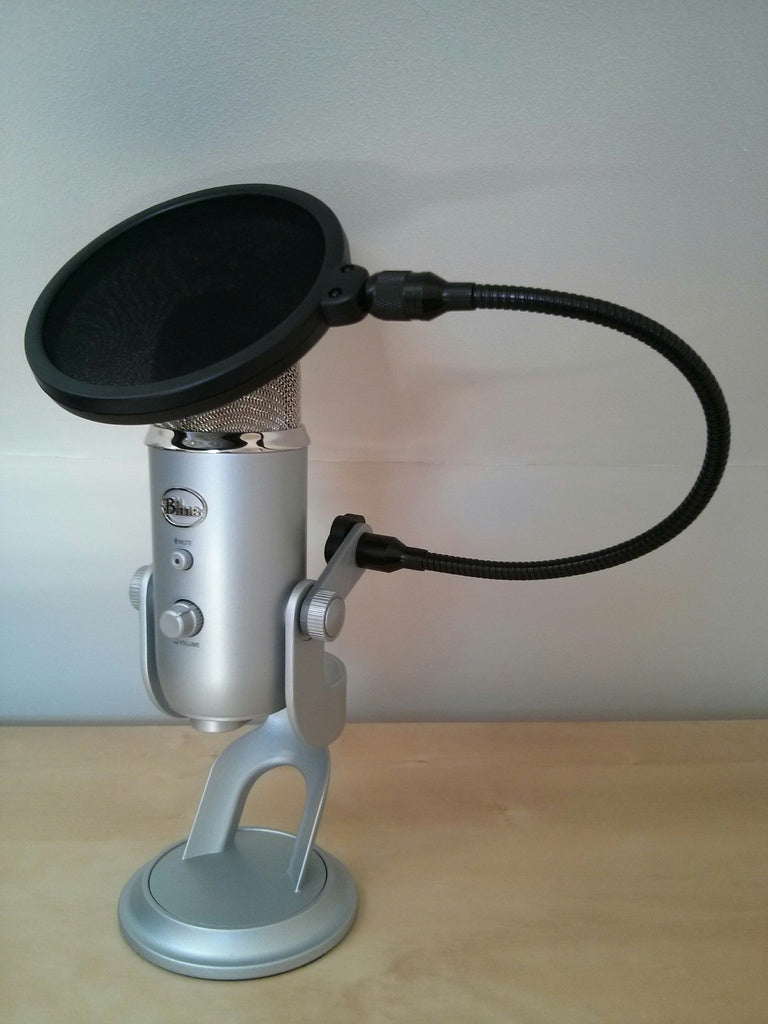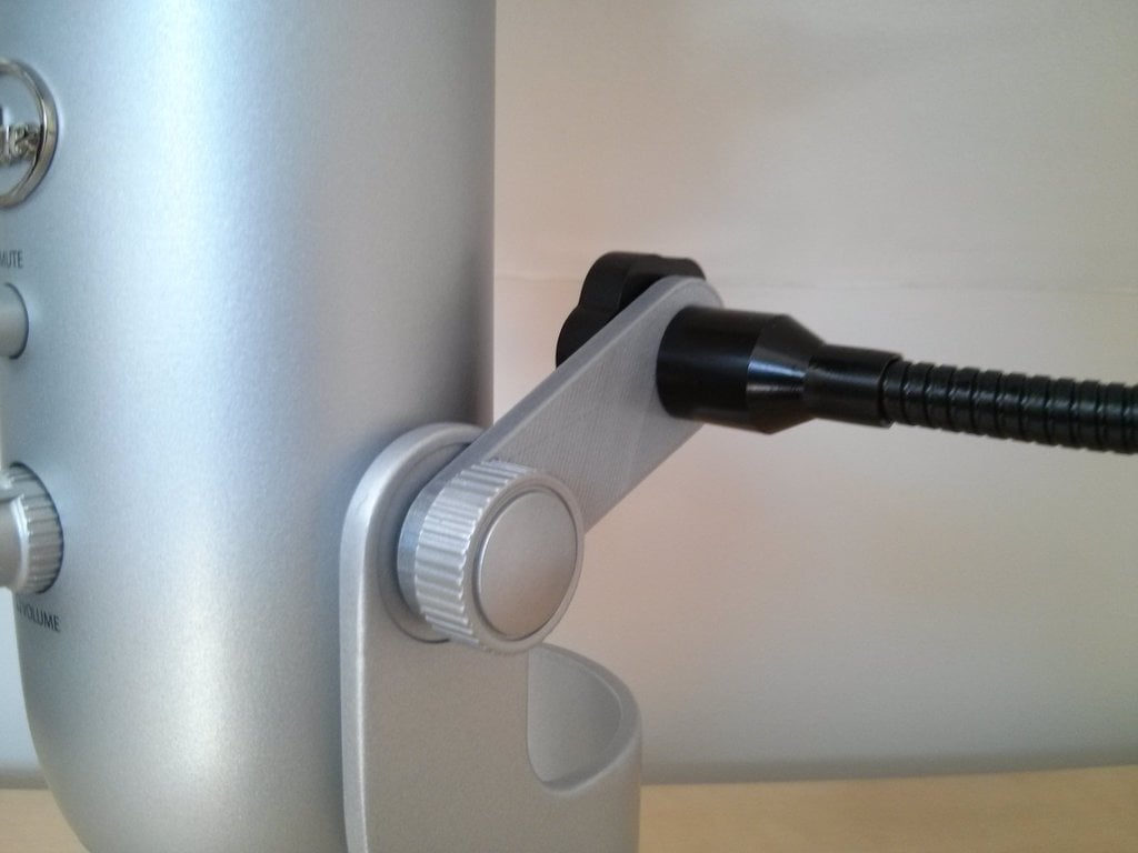 Fästet för ett Blue Yeti mikrofon popfilter gör det enkelt att montera ett standard popfilter på din Blue Yeti skrivbordsmikrofon. Popfiltren är designade för att skruvas fast på ett vanligt mikrofonstativ med metallfäste. Detta fäste ersätter det befintliga och låter dig montera popfiltret direkt på din Blue Yeti-mikrofon. Fästet kan enkelt fästas genom att skruva fast det. Vinkeln kan även justeras genom att lossa bulten.