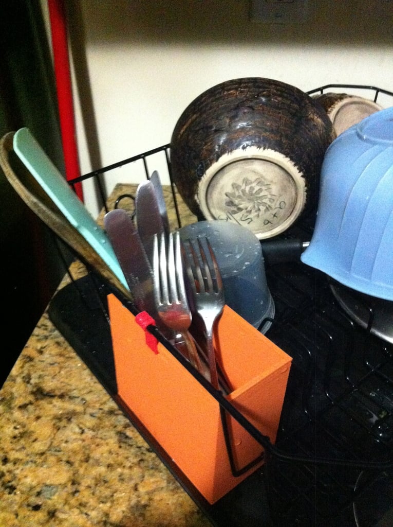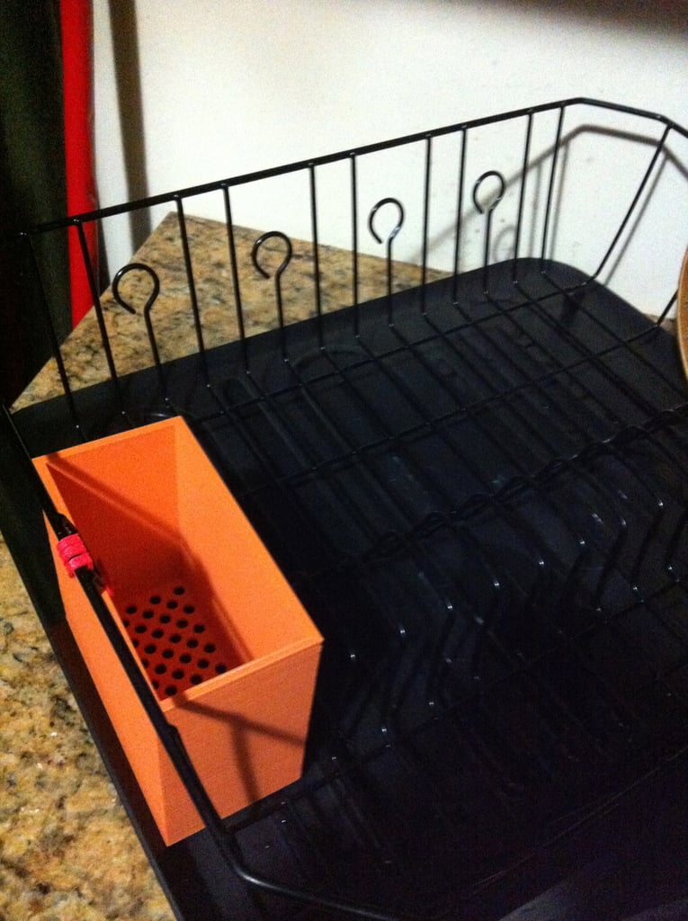 En bestickhållare för ditt diskställ, utrustad med krokar och avlopp. Detta är den perfekta lösningen för att organisera din disk och ser till att dina bestick är snyggt förvarade och lätta att nå, samtidigt som vattnet lätt töms bort. Det perfekta tillskottet till alla kök!