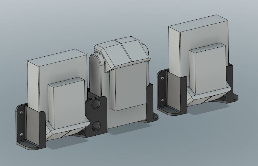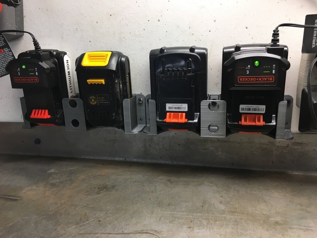 Eftersom de bara är avsedda att hållas vertikalt för laddningsändamål och för att ta hänsyn till skrivartoleranser, är fästena designade för att vara lite slarviga. Jag laddar inte DeWalt-batterierna i hållarna, men de passar så jag håller dem ur vägen också.