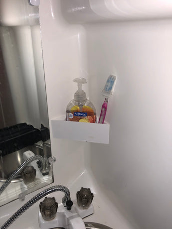 Skapa mer ordning och funktionalitet i ditt badrum, särskilt i små utrymmen som en husvagn eller husbil. Denna praktiska hållare är utformad för att effektivt förvara mjuk tvål och tandborstar, vilket håller ditt badrum snyggt och prydligt. Den universella designen gör att den passar i de flesta 90-graders hörn och enkelt kan fästas med dubbelhäftande tejp. Oavsett om du letar efter en smart handfatorganisatör för tvål eller en permanent plats för dina tandborstar, erbjuder denna hållare en diskret och funktionell lösning för badrummet.