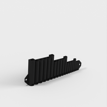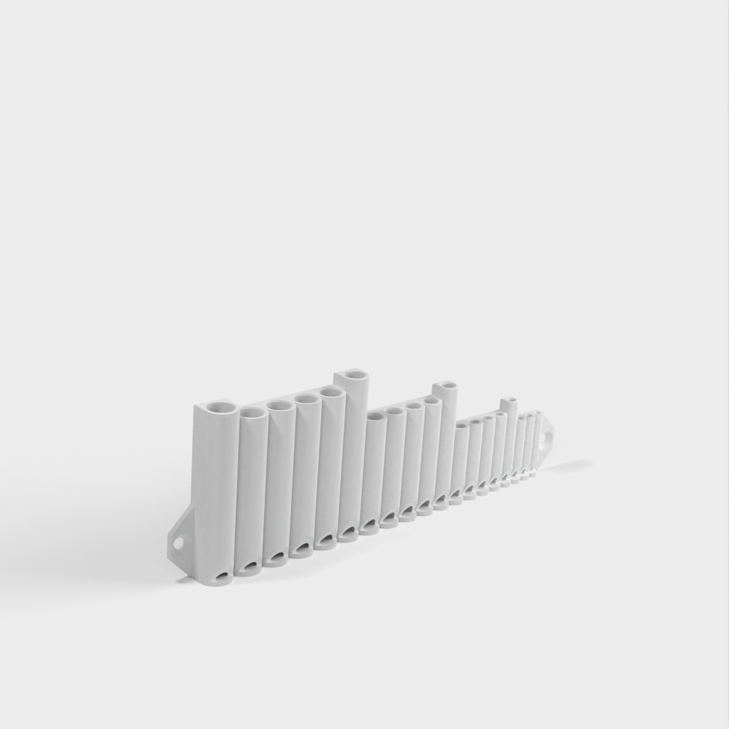 Denna kompakta borrhållare kan antingen monteras direkt på en vägg eller placeras i din verktygslåda. Med denna hållare kan du enkelt hålla koll på dina borrar med en diameter mellan 1 mm och 10 mm, i 0,5 mm intervaller (t.ex. 1,5 mm, 2 mm, 2,5 mm, etc.). Hålen för borrar i storlekarna 2,5 mm, 5,0 mm, 7,5 mm och 10 mm är upphöjda så att de är lättare att känna igen. Borrhållaren kan enkelt monteras med 2 skruvar.