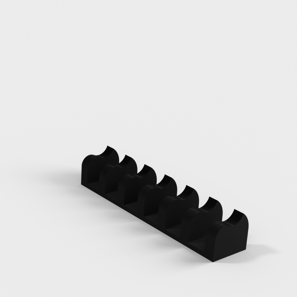 Organisatören är strax under 13 cm lång (cirka 5 tum) och har 1,27 cm breda fack (cirka 1/2 tum) som ger plats för att säkert förvara upp till 6 olika verktyg. Denna kompakta design säkerställer att dina verktyg hålls organiserade och lätta att hitta, oavsett om du arbetar med ett projekt hemma eller behöver snabb åtkomst till specifika verktyg i verkstaden.