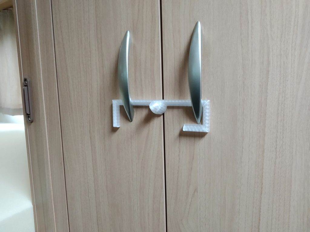 Ett litet lås designat för att hålla skåpsdörrar stängda under transport i din husvagn. Om dina husvagnsskåpsdörrar har för vana att öppnas under resan kan detta vara en praktisk lösning. Det är en enkel krok som spärras över båda dörrhandtagen och hindrar dem från att öppnas.