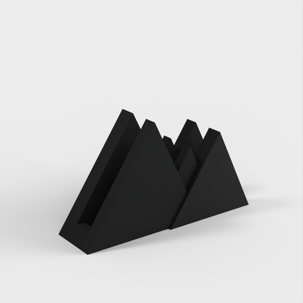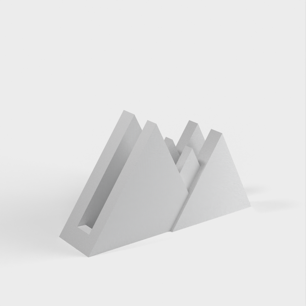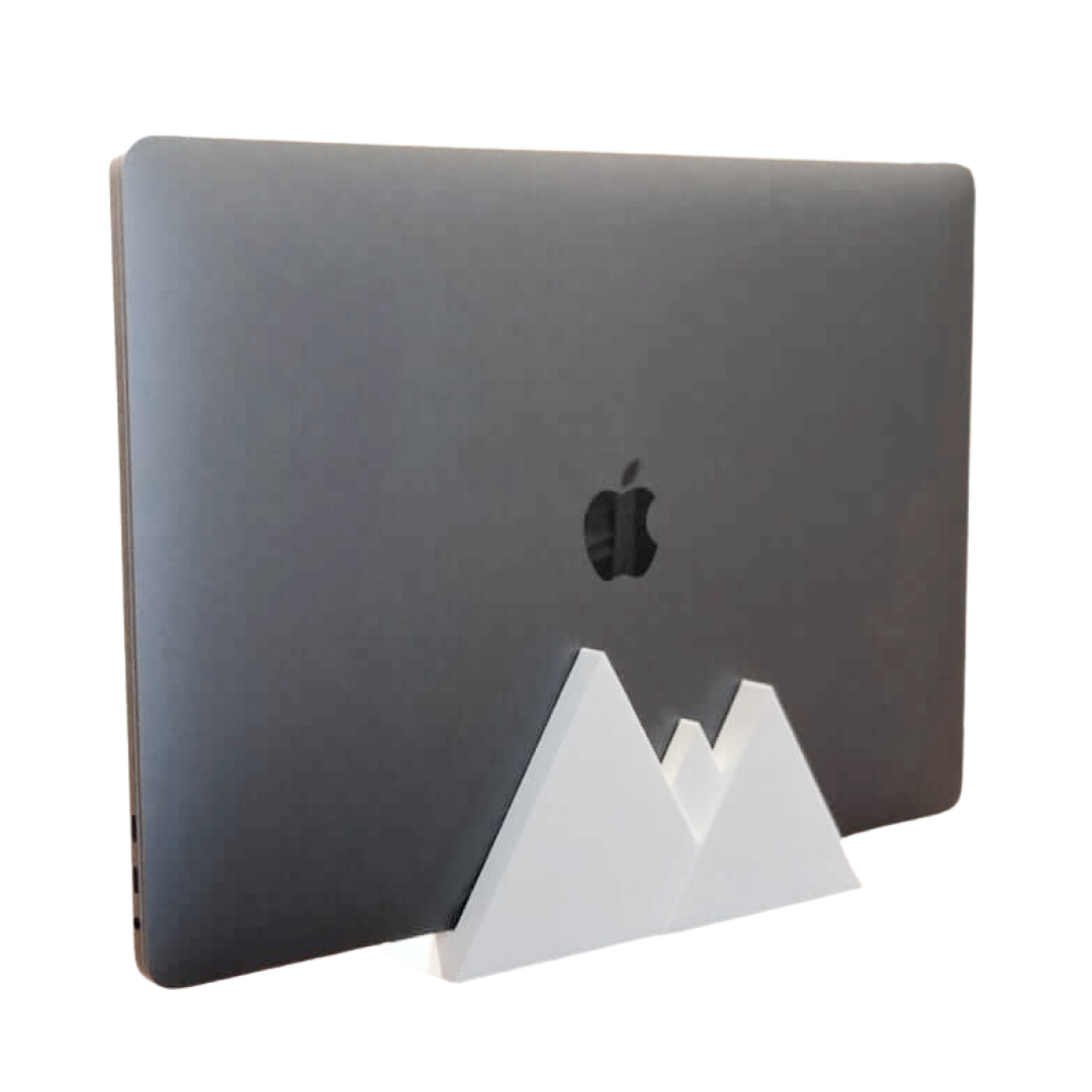 Ett enkelt men robust vertikalt stativ för en Macbook Pro med ett integrerat bergslandskap. Själva hålet Macbooken sitter i är 1,62 cm brett och passar därför de flesta modeller.