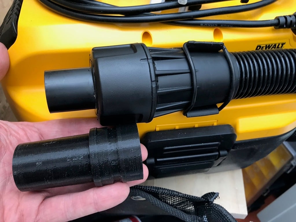 En adapter från DeWalt Airlock till 35 mm. Denna produkt är designad för att ansluta din DeWalt DCV584L dammsugare till din Festool styrskena dyksåg. Standard Airlock-adaptern slutar i en 32 mm tapp som bara rasslar runt i 35 mm-porten på sågen, men denna adapter löser problemet effektivt.