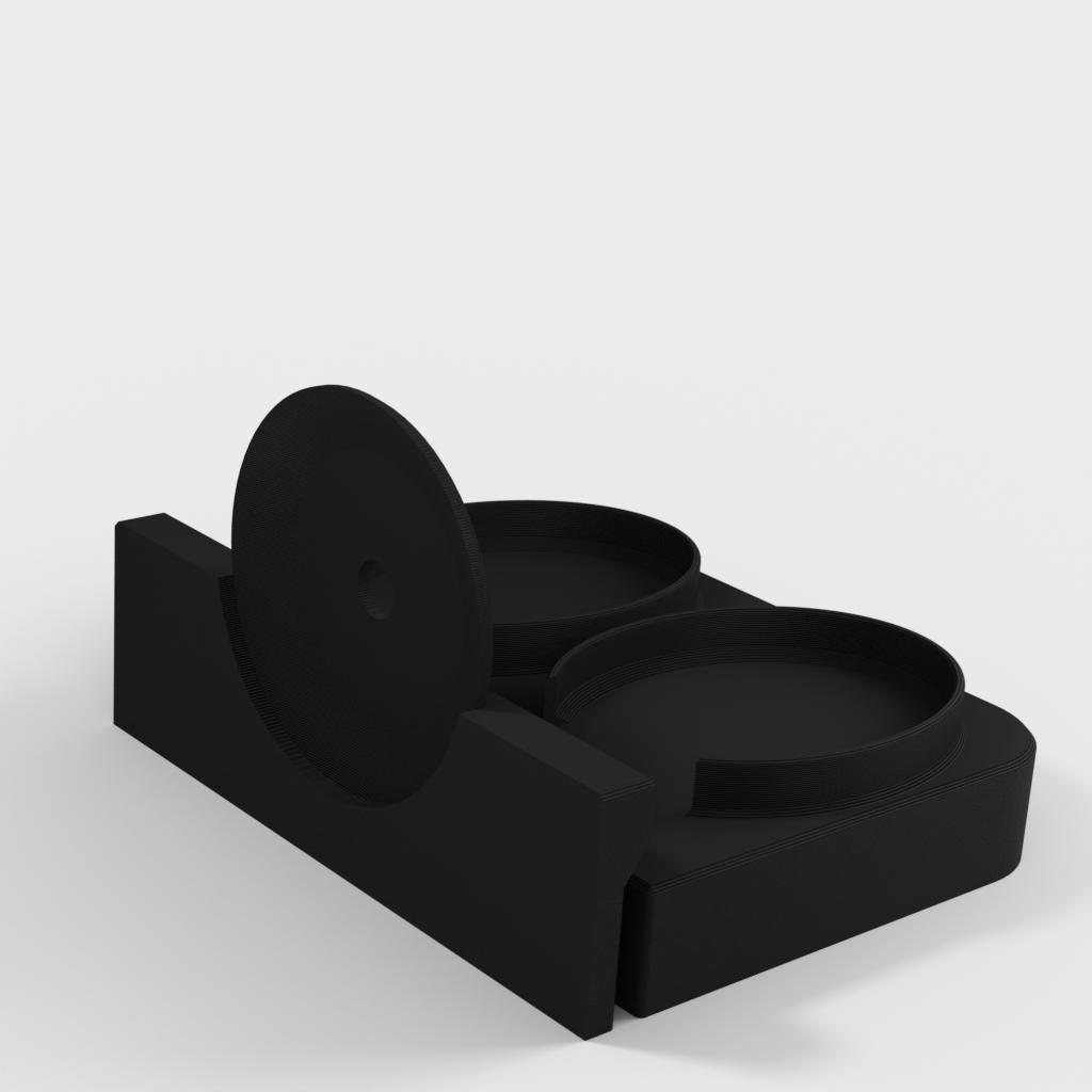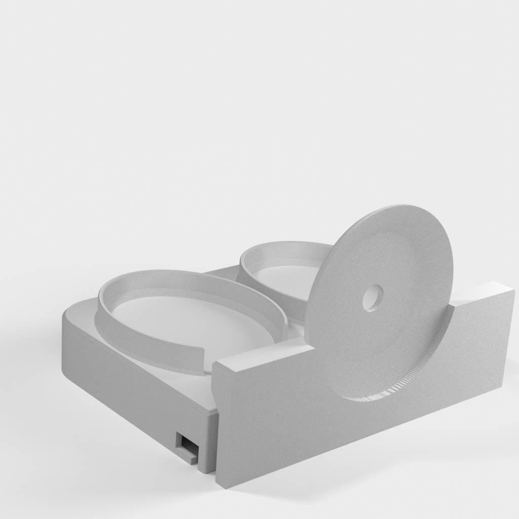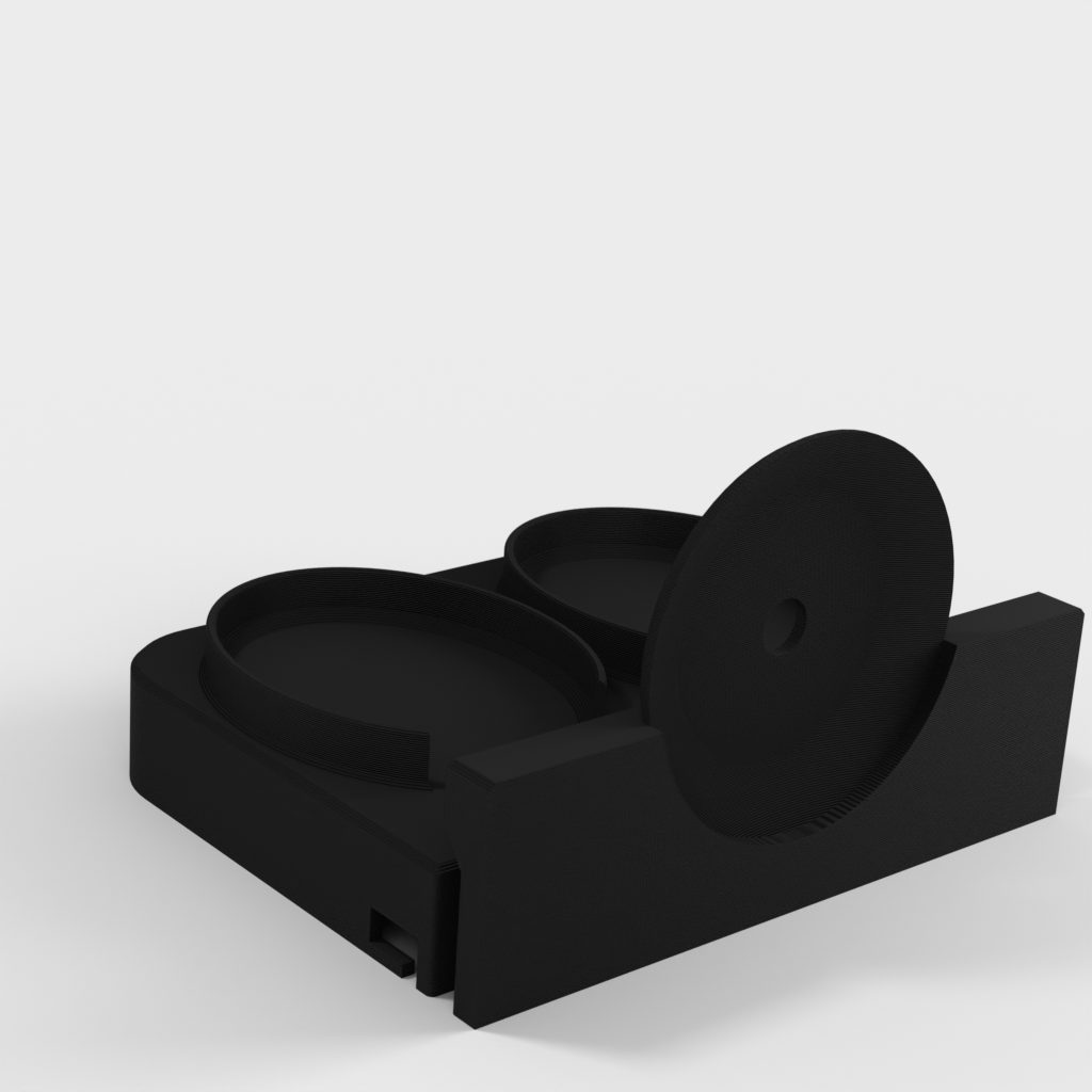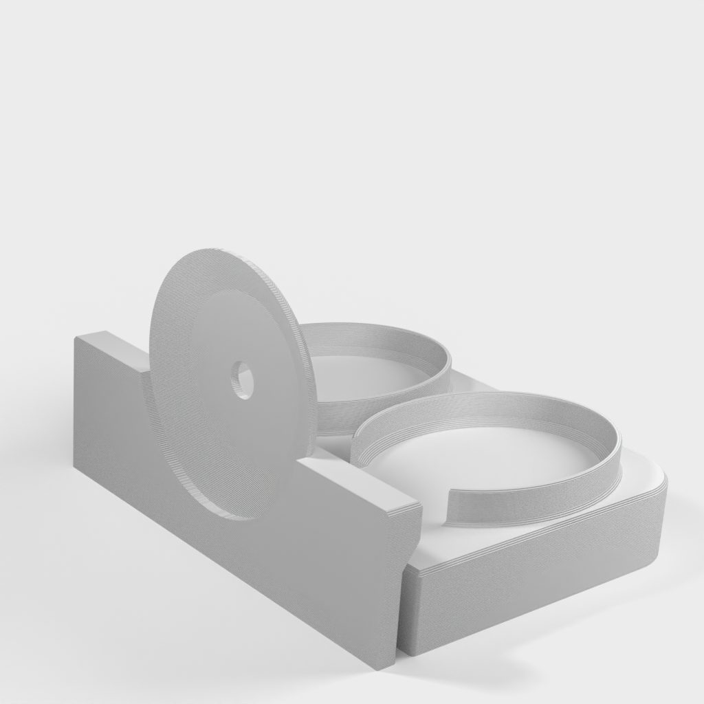 Denna dubbla laddningshållare är utformad för att städa upp ditt badrum genom att samla två Oral-B eltandborsteladdare på ett ställe. Hållaren bidrar till ett snyggt utseende genom att minimera röran på ytor. Den har en smart kabelupprullningsfunktion som gör att du kan förvara överflödig sladd snyggt och diskret utan att behöva klippa av eller skada sladdarna.