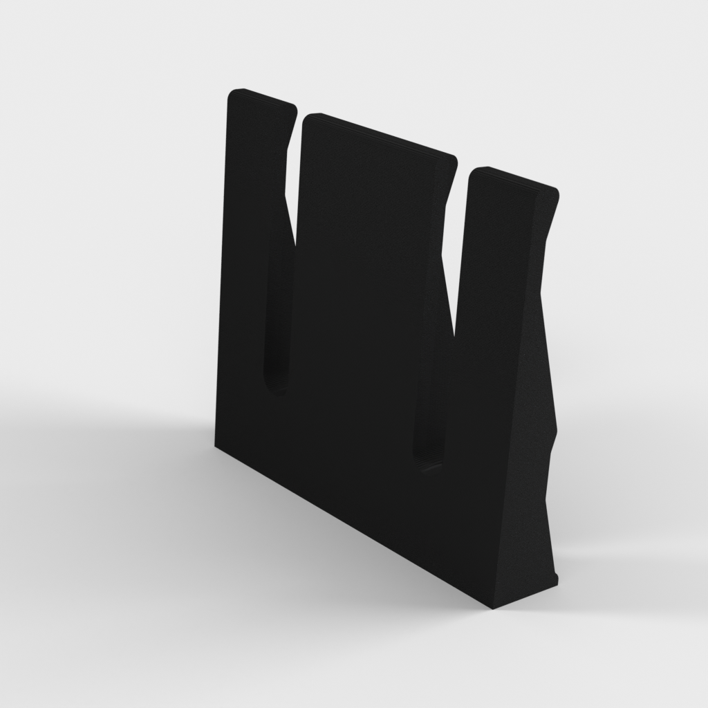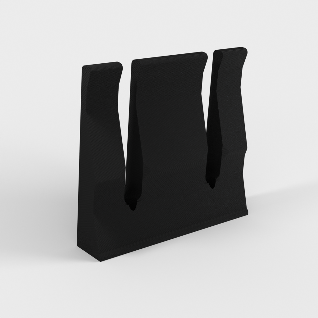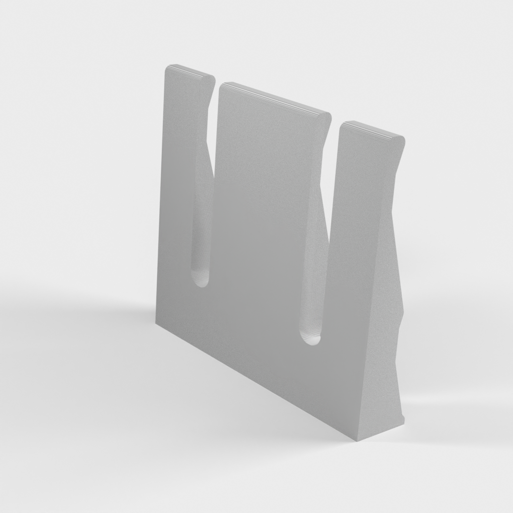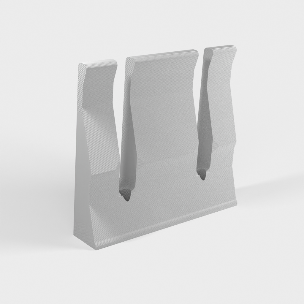 Hållaren är utformad för att hålla upp till fyra glasögon, vilka försiktigt trycks in så att botten vilar i de avsedda spåren. Detta säkerställer att glasen hänger säkert och skyddat, redo för alla festliga tillfällen. Installationen är diskret med två dolda skruvar, vilket bidrar till ett rent och strömlinjeformat utseende på din vägg.