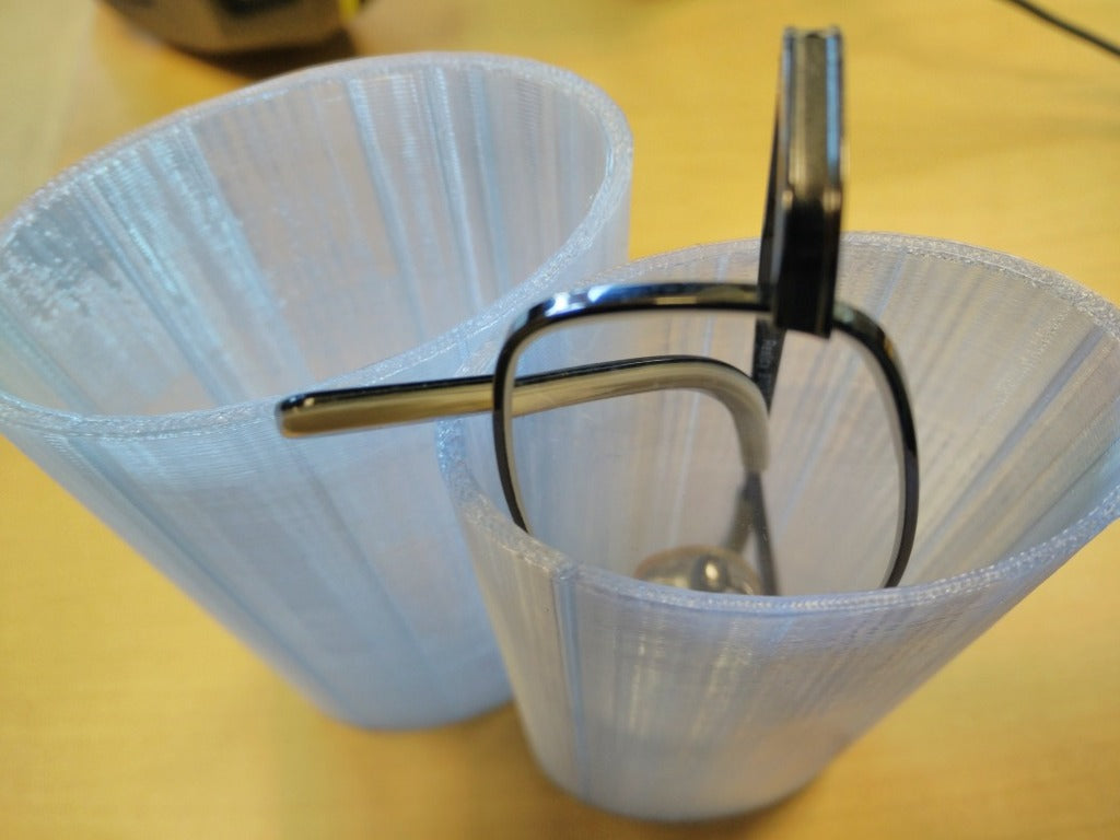 Enkelt fodral för glasögon bestående av två cylindrar som glider ihop. Fodralet rymmer vikta glasögon och solglasögon upp till måtten 3 cm x 5 cm x 20 cm.